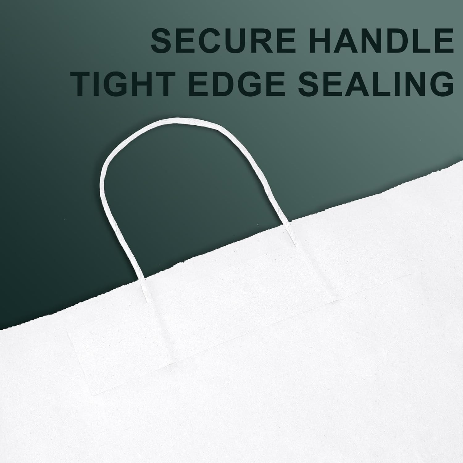 Switory 20 pieces White Kraft Paper Bag, Kraft Gift Bag with Handle, Paper Bags, Gift Bags for Shopping, Weddings, Packaging, Parties, Birthdays, Christmas (13.3 x 9.5 x 20.3 cm)