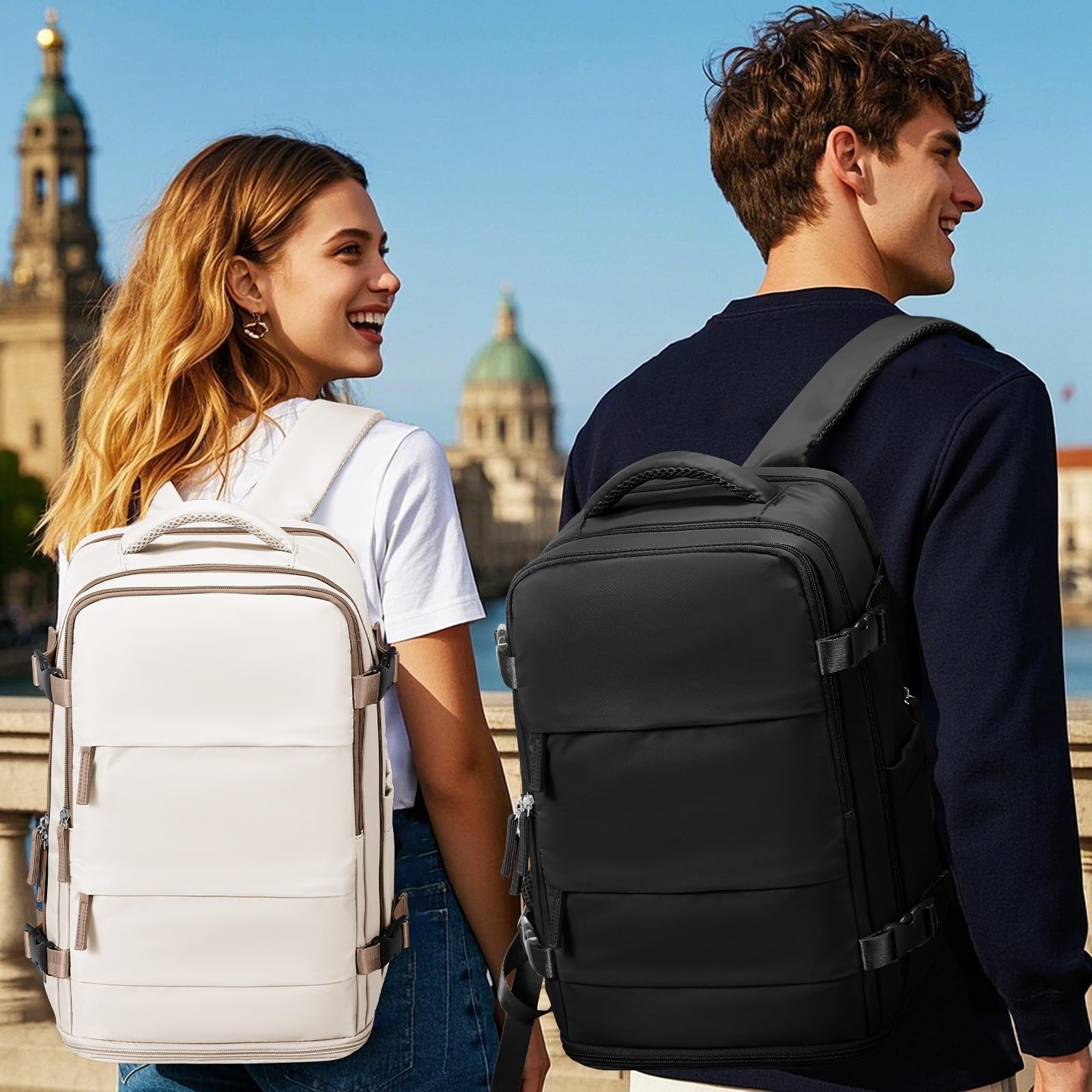 SZLX large travel backpack for women, carry-on backpack, hiking backpack waterproof outdoor sports backpack casual daypack school bag fit 14-inch laptop with shoe compartment and laptop compartment, beige