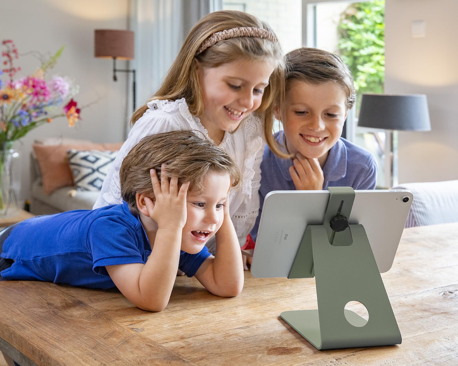 Tabdoq solid tablet stand compatible with all tablets and iPads from 8 to 13 inches, green.