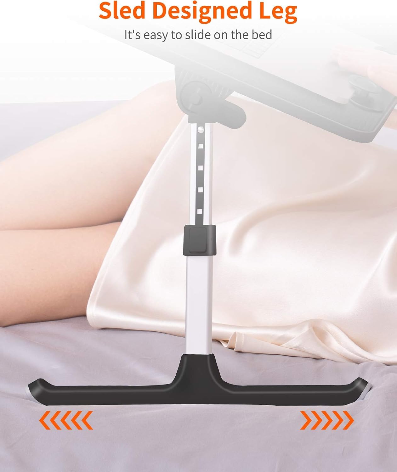 "☘️Ergonomic Design Bed Table - The soft wrist rest provides a comfortable place for your wrist. The retractable blocker protects your computer from falling off. 5 adjustable heights (9.4-12.6 inches) and 4 adjustable angles (0-36°) ensure a more comfortable posture and avoid back and neck pain."
