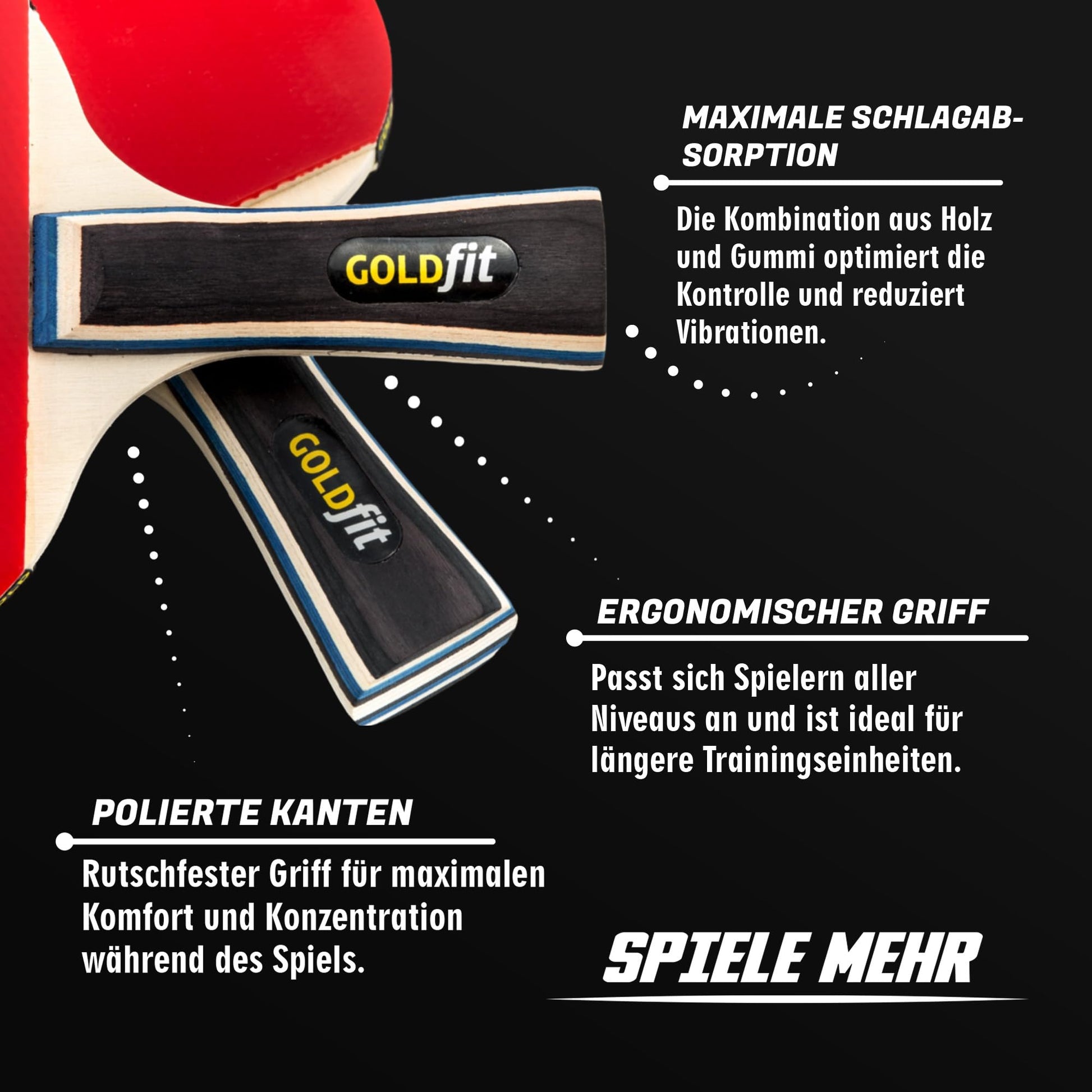 "✅ Comfortable & Durable Construction: This professional table tennis racket features an ergonomic handle and a side strap to protect the rackets from damage while providing comfort during play. The Goldfit Crystal seal on the handle adds a unique, elegant touch for an enhanced player experience.",