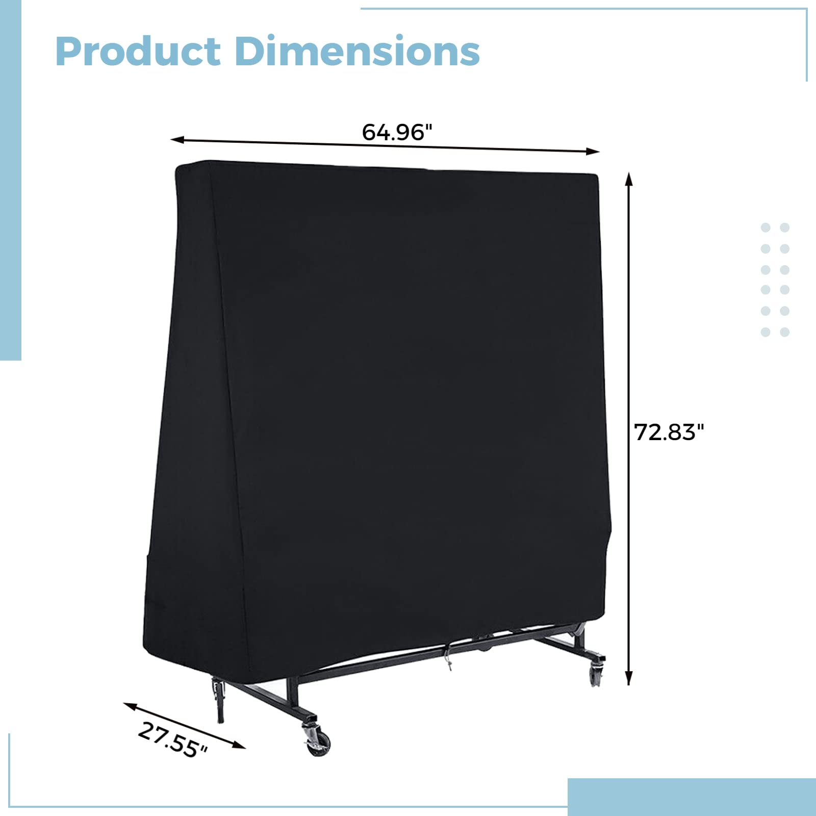 "Product dimensions: 72.83 x 64.96 x 27.55 inches / 185 x 165 x 70 cm. Perfect for most standard size ping pong tables, effectively protecting your outdoor ping pong table from wet and humid weather. The smooth drawstring makes it easy to put on and take off the cover. Please check the measurements of your furniture before purchasing"