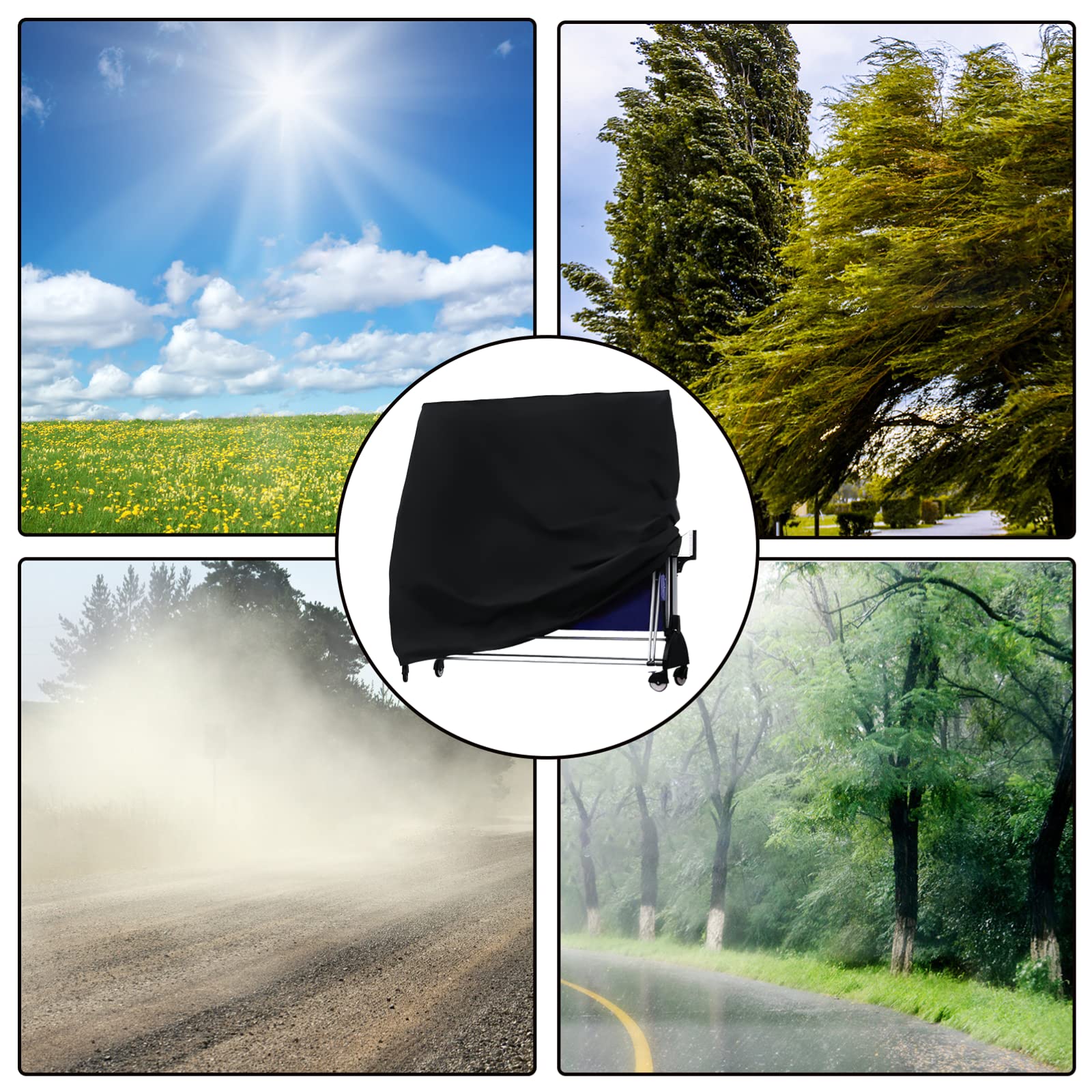 "Breathable and windproof: Taffeta fabric has good ventilation performance to dissipate heat and moisture inside the cover. There is an adjustable buckle at the bottom to keep the ping pong table stable on windy days"