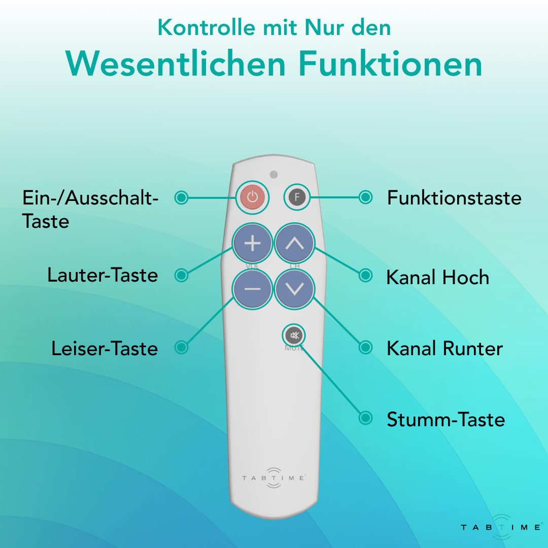 "Easy setup - Learns from your old remote control in minutes. Includes 2xAAA batteries for quick start. Ideal as a TV remote control for seniors or senior remote control for easy operation without technical stress"