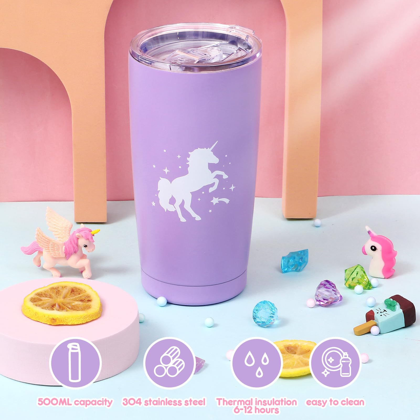 UNICORN ALWAYS BY YOUR SIDE: The insulated stainless steel water bottle is non-toxic and easy to clean. Hot drinks can stay warm for up to 12 hours. The lightweight and practical unicorn shoulder bag is very suitable for girls to carry.