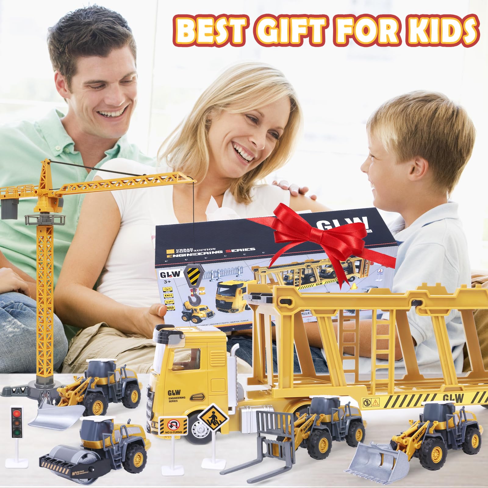 Tacobear Construction Vehicles for Kids Large Truck Vehicle Toy Gifts for 3 4 5 6 7 Year Old Boys with Crane Toy Bulldozer Steamroller Forklift Construction Vehicles Birthday Gift Ideas Boys