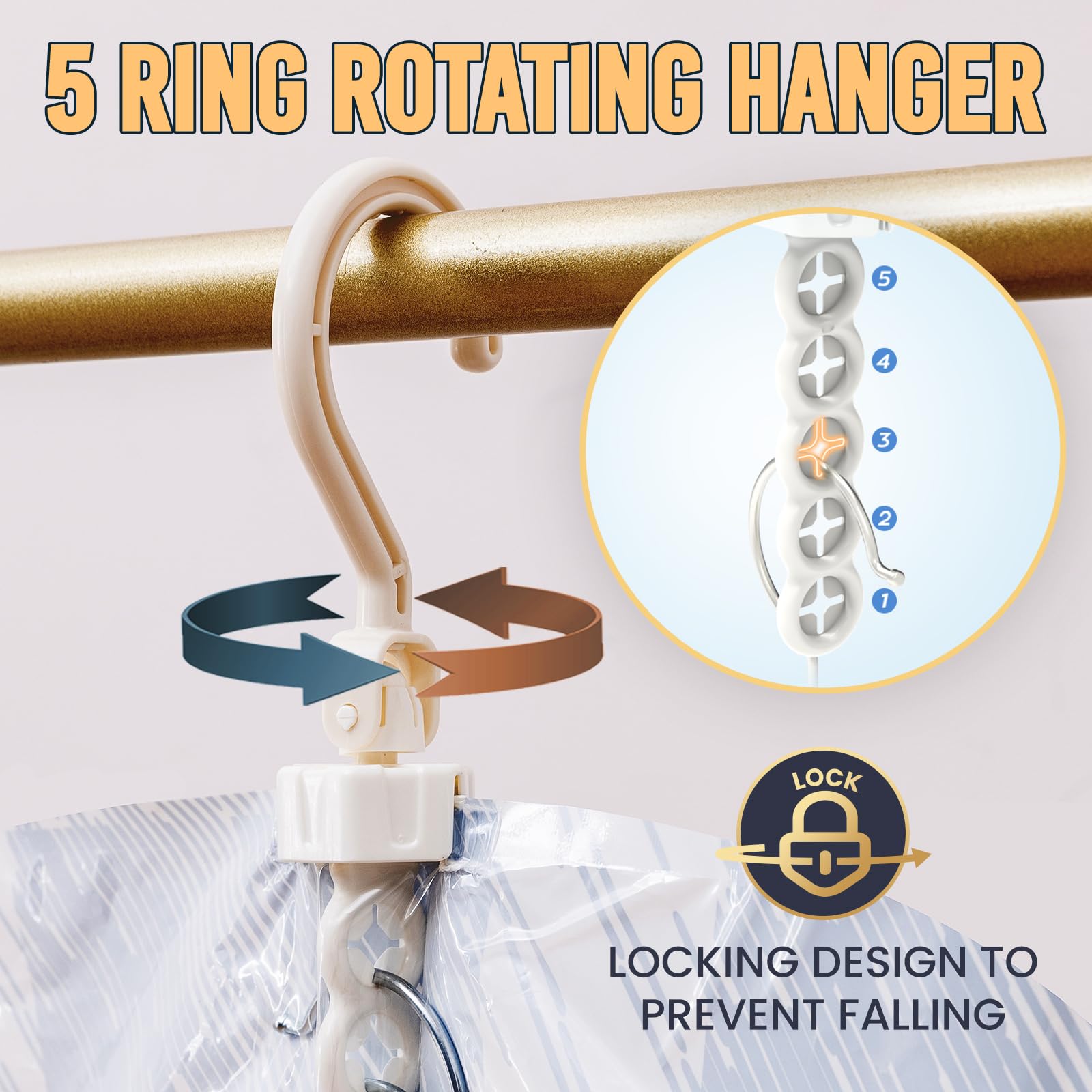 ["Save 80% space in your closet: You will receive 2 long (53x28 inches) and 2 medium (41x28 inches) vacuum bags for storing suits, jackets, coats, and dresses, whether short or long. These vacuum storage bags are the best choice to save 80% of space in your closet","Special five-ring hook design: The opening width of the hanging clothing vacuum bags is 1 inch, suitable for most closets. The special five-ring hook design can be rotated 360°, allowing you to quickly find and retrieve the desired clothing items","Upgrade pro air valve: The hanging clothing vacuum bags are equipped with an improved patented air valve suitable for any type of vacuum cleaner. The transparent body of the vacuum bags and the two-color zipper allow you to see the sealing and venting effect more intuitively","Protect your stored items: TAILI Blue vacuum bags are made of a high-quality PA&PE blend, durable, soft, and flexible, so they can be reused many times. These vacuum storage bags are waterproof and airtight, can protect your clothing from dust, and keep them odor-free for a long time","Ideal closet organizer solution: Extra-long size fits any garment, no matter how long or short. A great space-saving bag for storing large clothing items such as coats, jackets, sweaters, dresses, and suits, saving over 80% of your closet space. It makes your life at home so much easier when it's in the closet"]