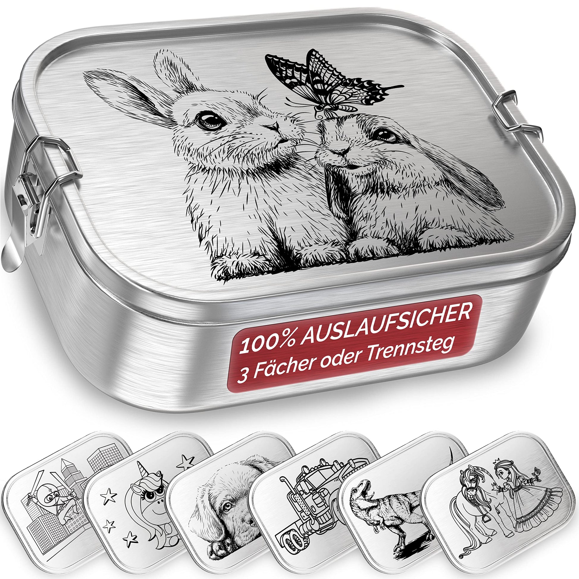 TAKWAY Stainless Steel Lunch Box for Kids with Compartments 800ml | Leak-proof | Bento Box with customizable divisions | Snack box for kindergarten, daycare, school (Bunny, divider)