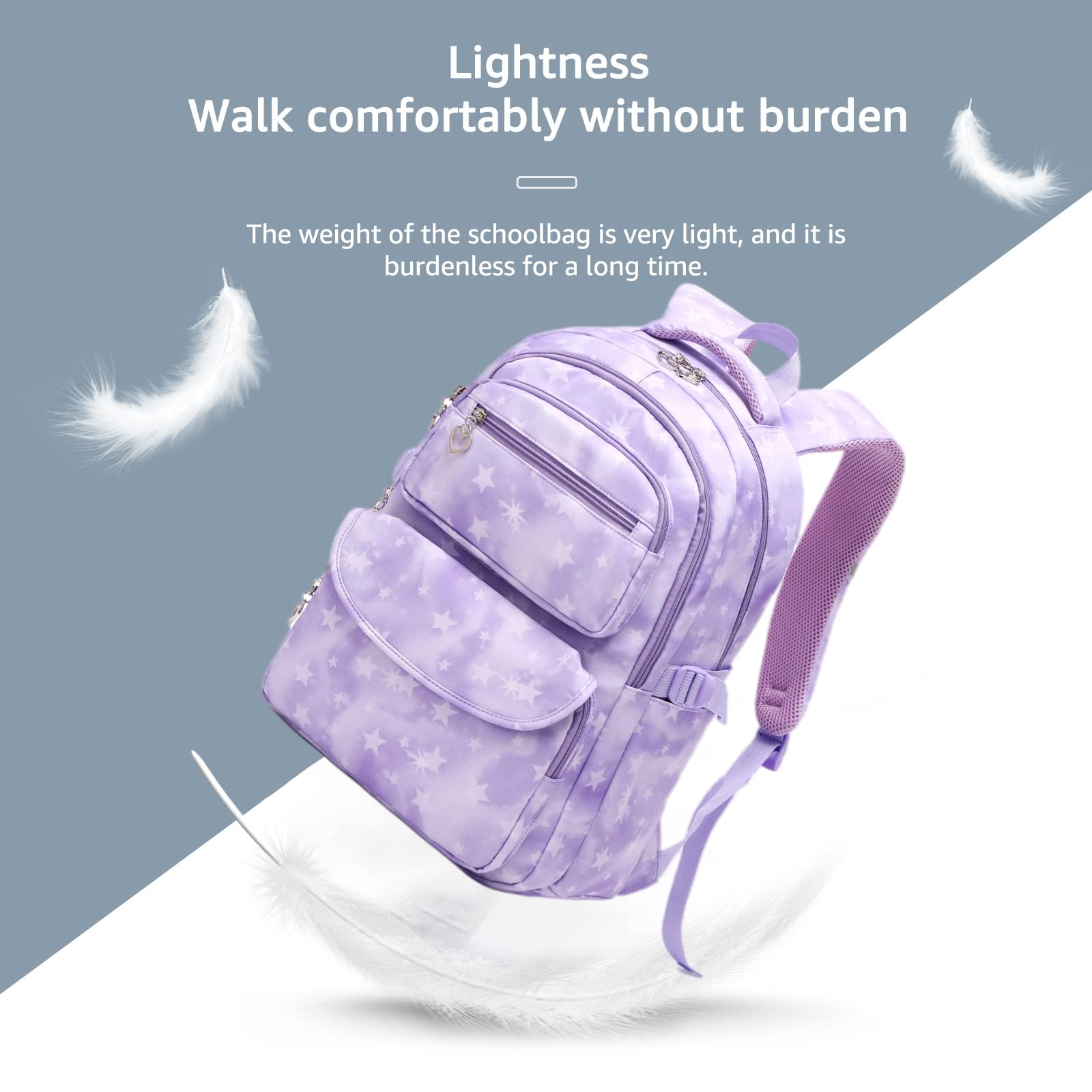 Premium Material: The school backpack is made of high-quality, waterproof polyester to protect your belongings from drizzle. Ideal for teenage girls from grades 3-9 (8-14 years old).