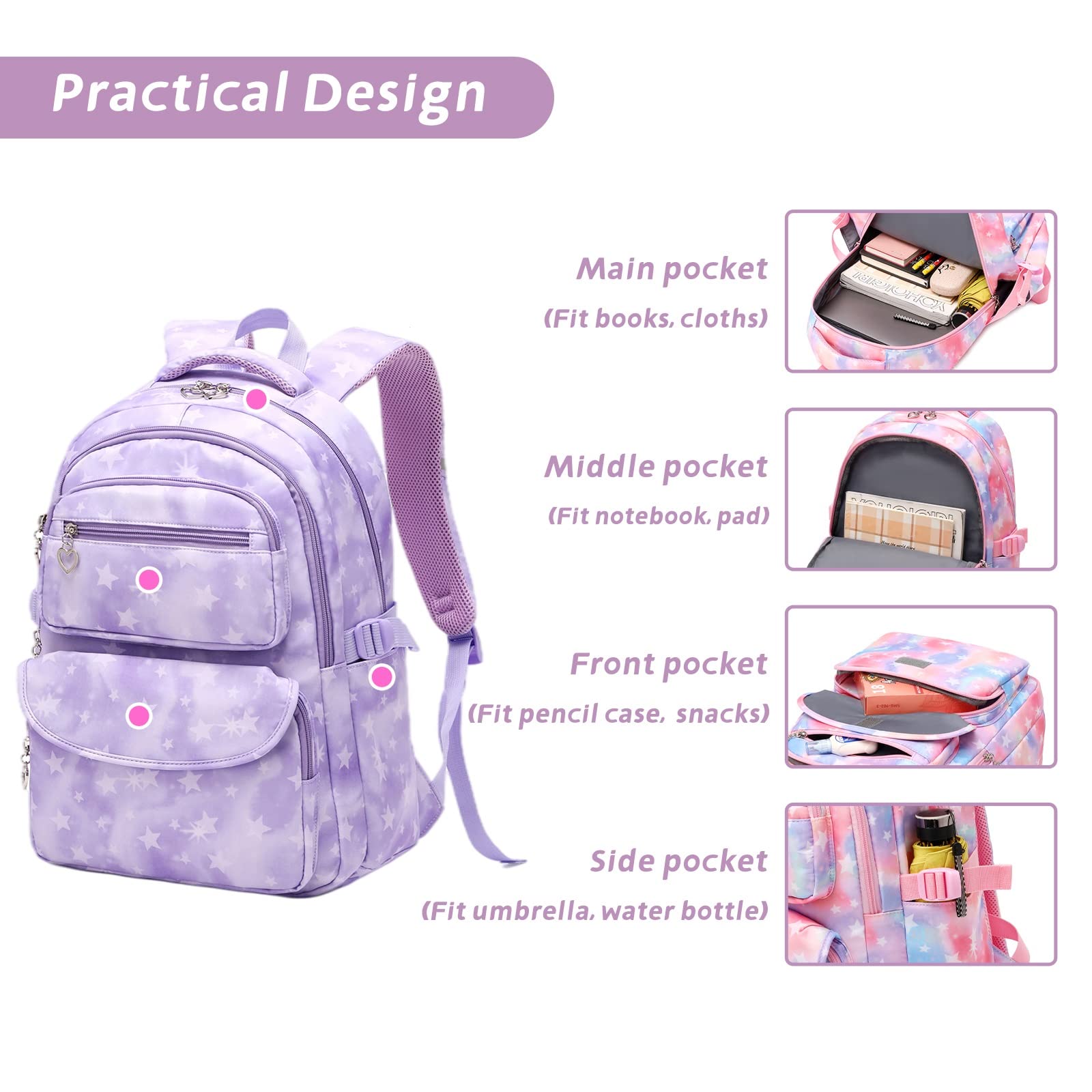 "You will receive: Soft and durable backpack School + lunch bag + pencil case. Unique color gradient design, this stylish, cute school bag for girls will make you stand out and win compliments when you are back in school.