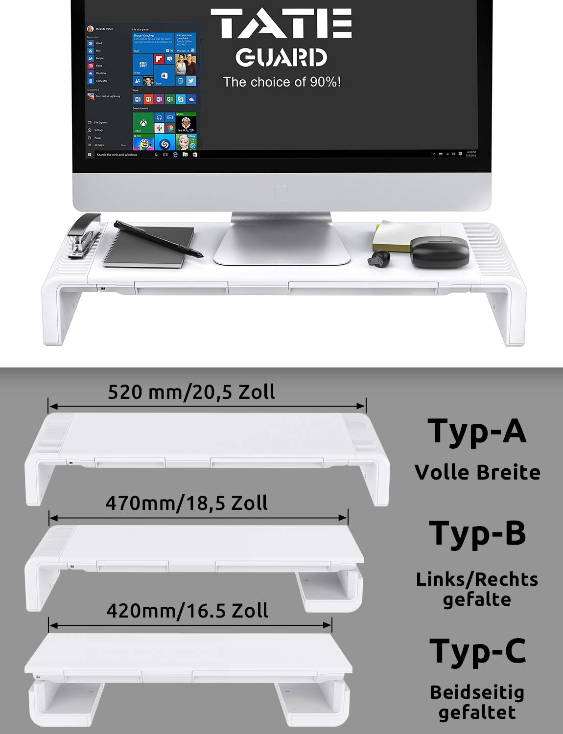 TATEGUARD Foldable Monitor Stand Riser Computer Monitor Stand with Adjustable Width compatible with iMac Printer Laptop with Storage Drawer Tablet & Phone Stand Holder White
