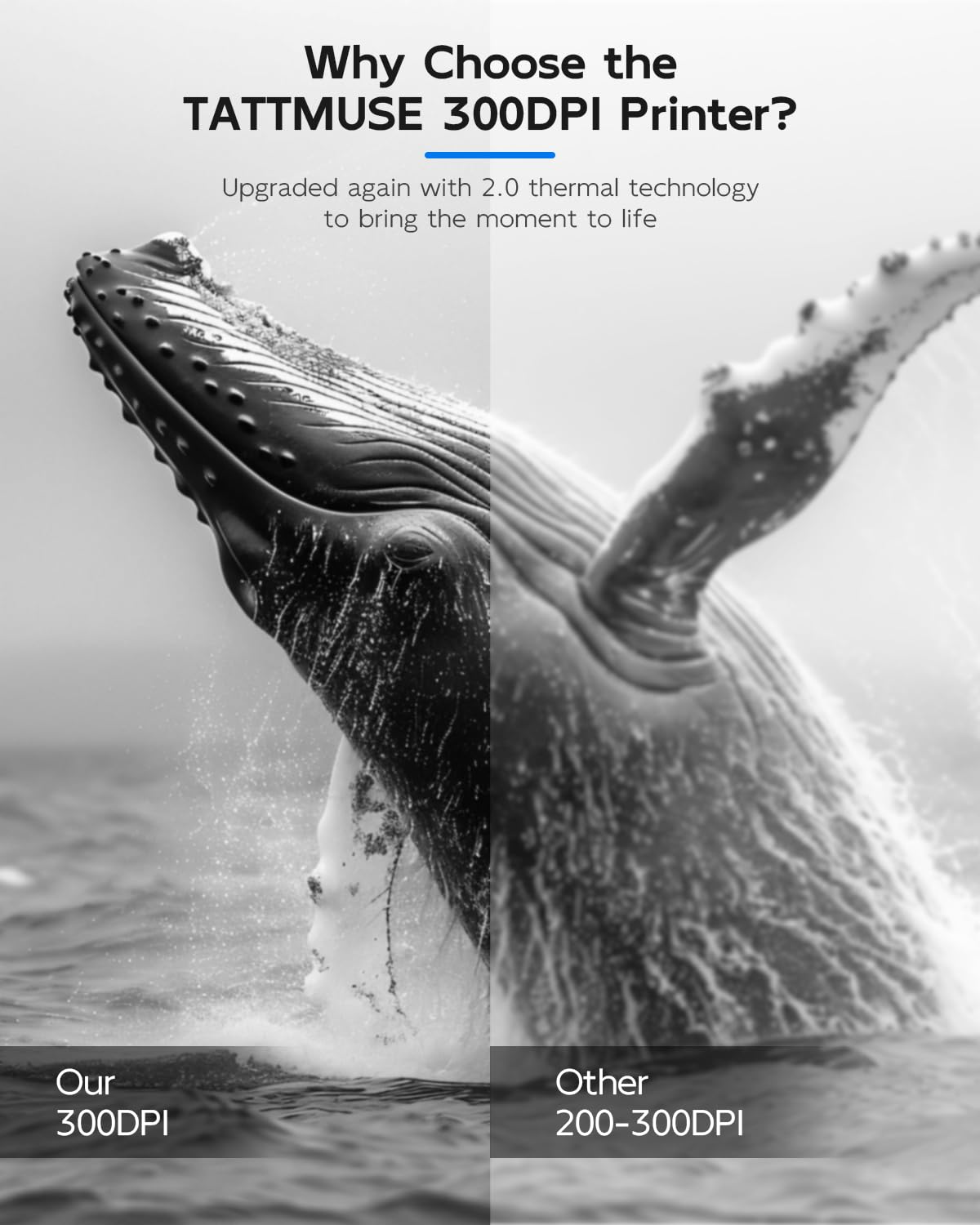 TATTMUSE Thermal Printer A4, 300DPI Bluetooth Mobile Printer, Receipt Printer, Learning, Portable Printer Compatible with Phone, Laptop, Monochrome Travel Printer Thermal Paper Only, Black