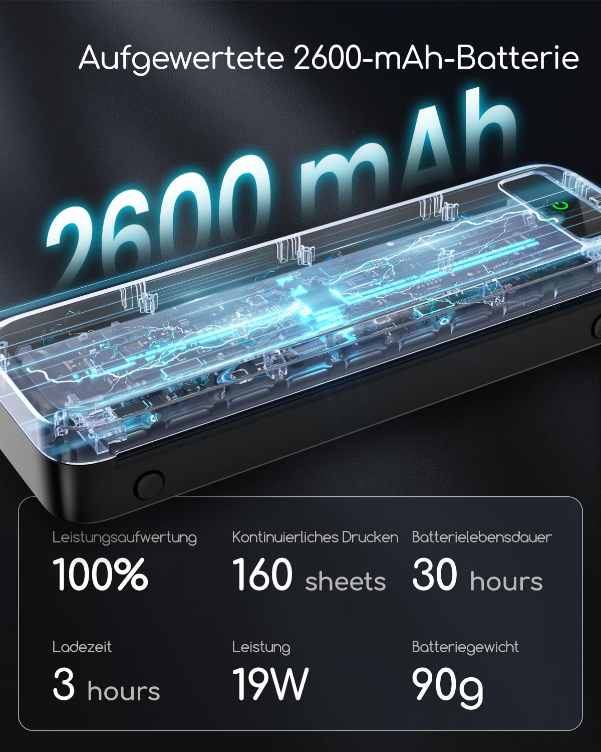 "Mini Portable Printer: 2600mAh capacity, allowing to print up to 160 thermal sheets (8.5 x 11 inches) with a single charge. Lightweight (only 1.5 lbs), this printer fits perfectly in backpacks and bags, making it ideal for on-the-go professionals, small offices, construction sites, students, and households.