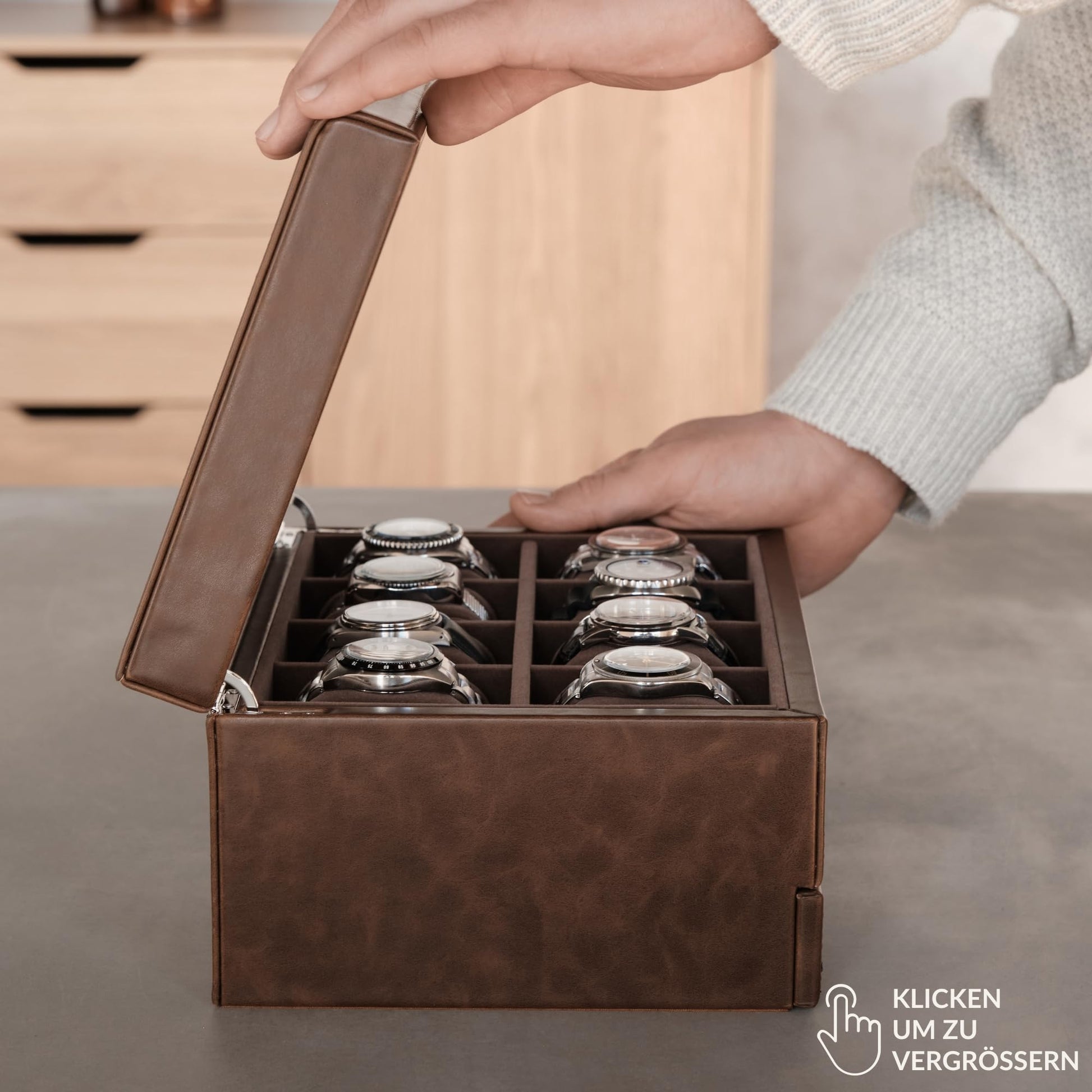 TAWBURY watch box for men for 8 watches - Men's watch box with 8 compartments made of brown vegan leather | Watch storage | Watch box for men | Watch case (Brown)