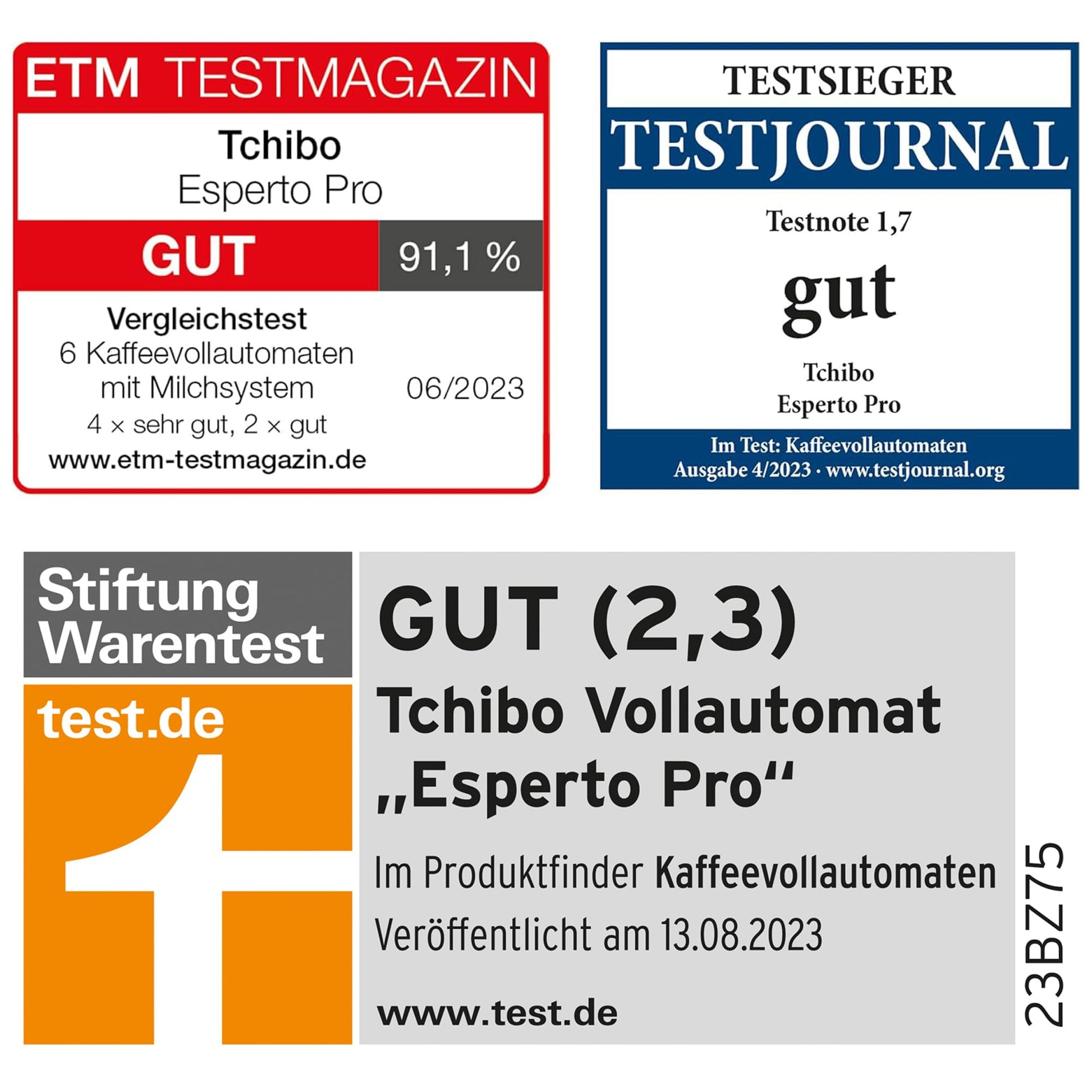 ["PERFECT FOR HOBBY BARISTAS: Our Esperto Pro and heat-resistant glass milk container with precise opening is ideal for the coffee machine, providing a stylish alternative to milk packaging.","COFFEE MILK SPECIALTIES AT THE TOUCH OF A BUTTON: The integrated “One Touch Milk System” with stainless steel lance and adjustable pressure regulator allows for optimal milk foam consistency.","VARIED COFFEE ENJOYMENT: Enjoy coffee specialties like Cappuccino and Latte Macchiato with our elegant milk carafe. The 600 ml glass container with level indicator and silicone lid is the perfect complement to your coffee machine.","COMPACT DESIGN: The 18 cm wide Tchibo automatic machine fits in any kitchen and can be used for cups and glasses thanks to the height-adjustable cup spout of up to 15.5 cm.","EASY CLEANING: The Esperto Pro features a descaling indicator, removable milk system, water tank, coffee grounds container, and brewing group for easy cleaning."]
