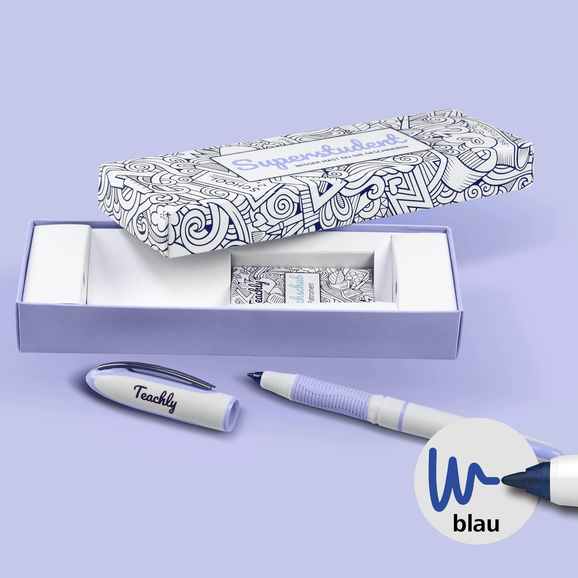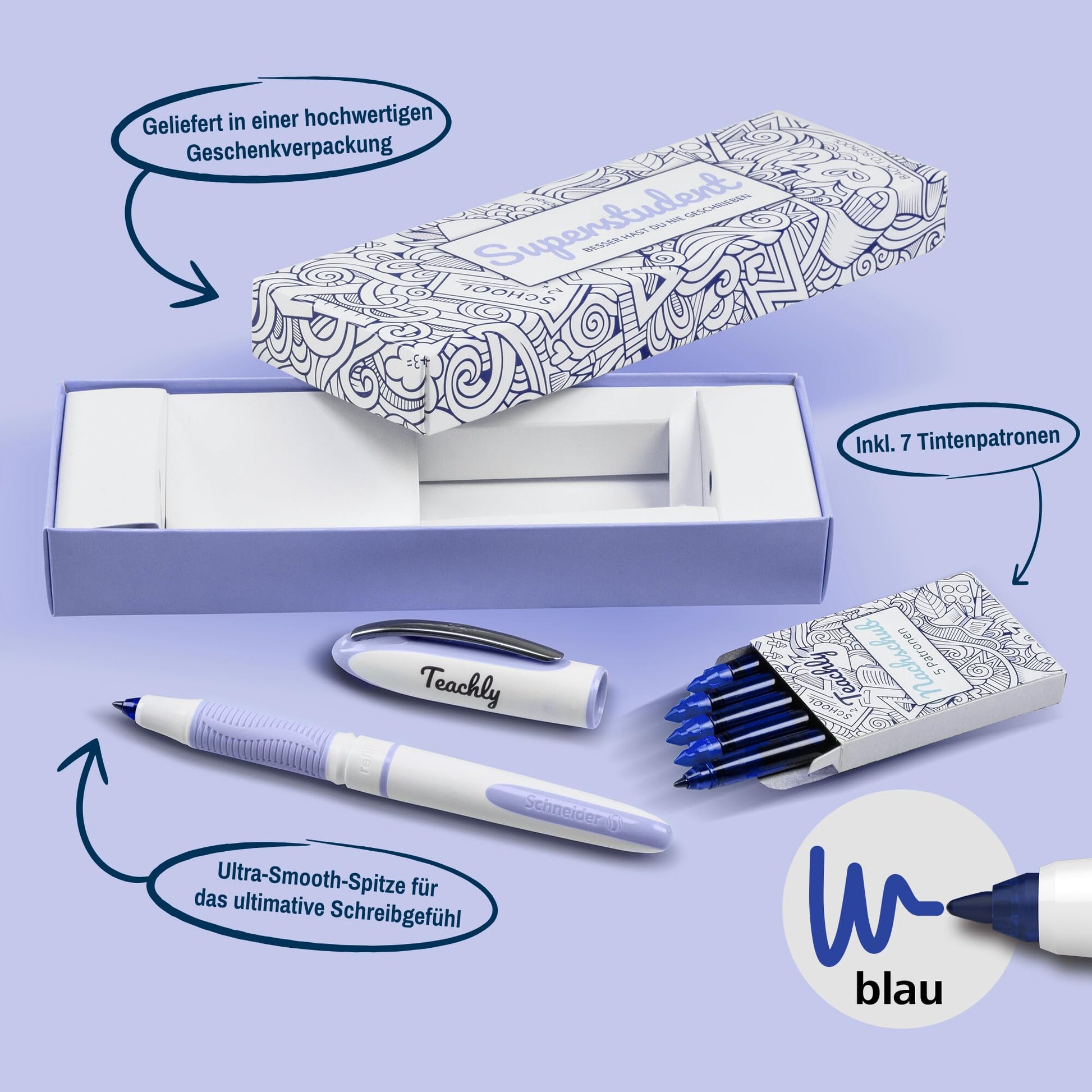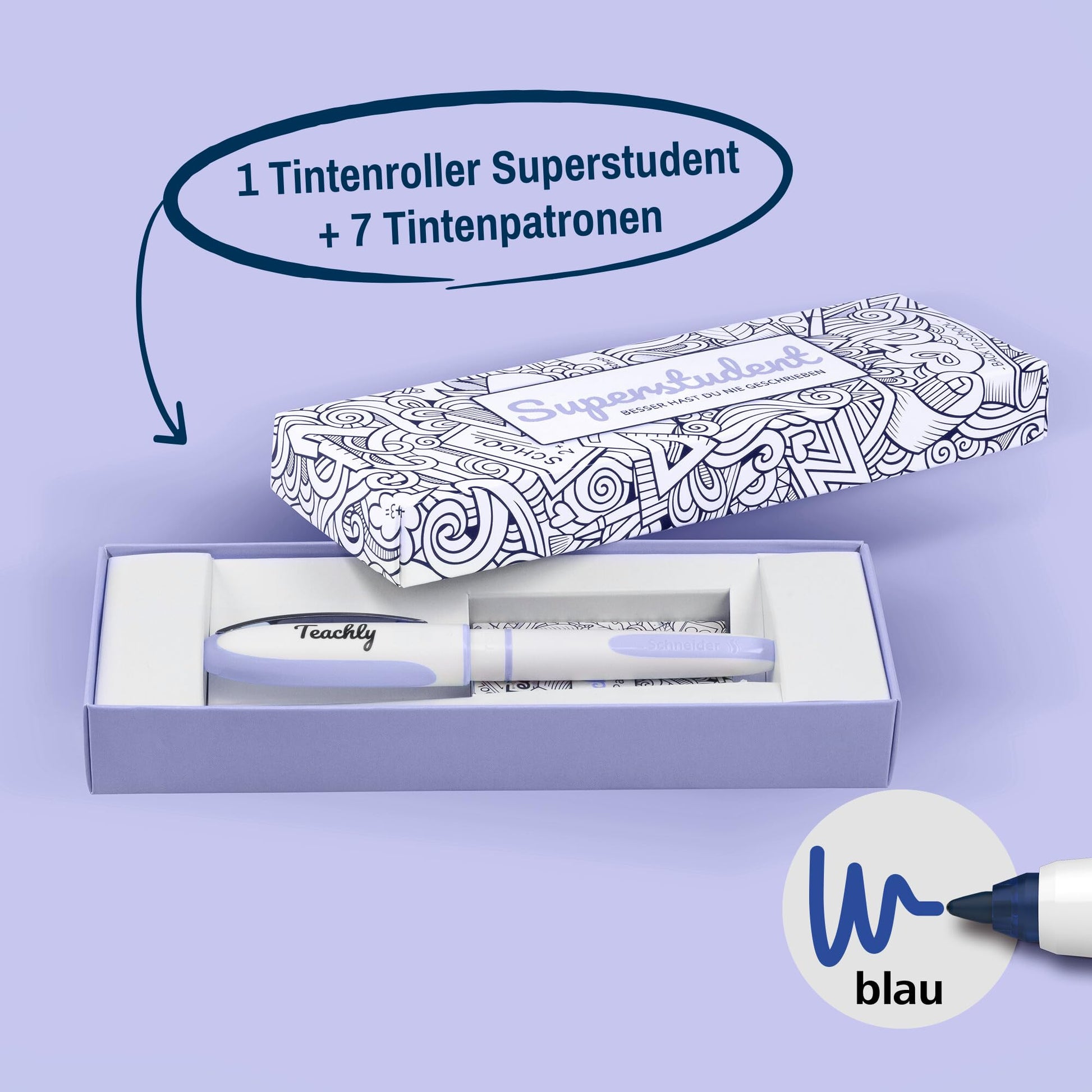 Teachly Superstudent Fountain Pen - Refillable pen for college, school & office (Lilac) - Includes 7 ink cartridges (Blue)