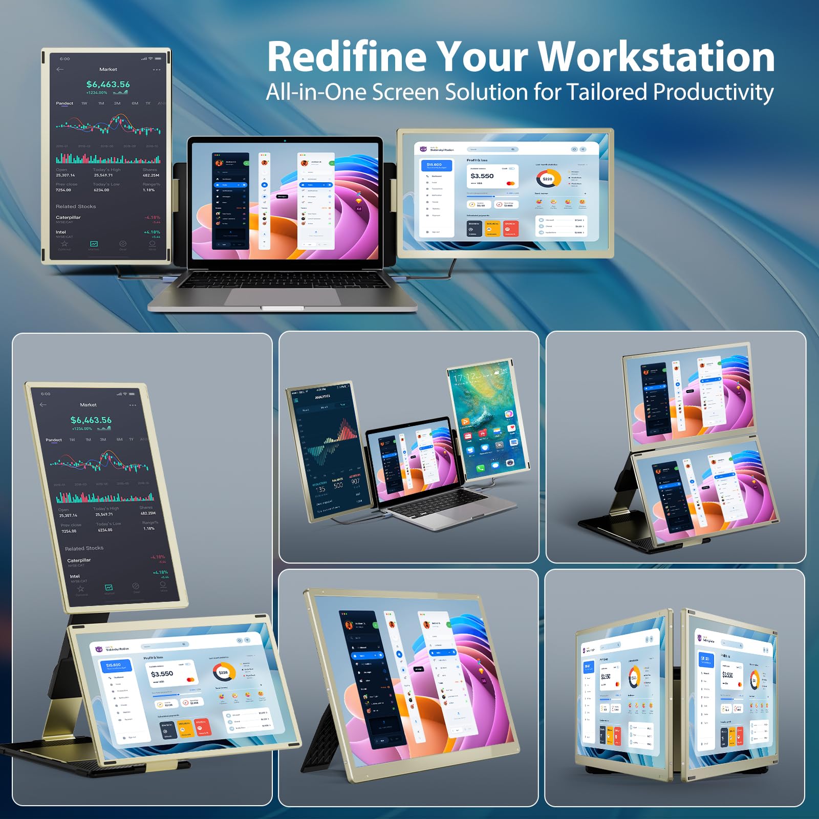 ["Innovative workspace solution: Boost your productivity with the revolutionary Teamgee laptop screen extension. Optimize your workspace with two detachable, larger, and thinner 15.6-inch displays for ultimate flexibility. The portable triple screen setup allows for more than 10 configurations - use all screens or just one, for laptops of all sizes. Easily adjust your screen configuration to suit your needs","Amazing visual experience: Experience the richness of a 120% sRGB color gamut with the Teamgee portable monitor, offering 16.7 million colors for precise pixel rendering. The Full HD resolution of 1920 x 1080, 300 Nit brightness, and 1000:1 contrast ratio ensure sharp, clear images. Crafted from a durable aluminum frame, it combines elegance with stability and enhances both aesthetics and performance. Ideal for professionals and enthusiasts alike","Dynamic versatility: Enhance your workspace on the go with our portable monitor, equipped with a durable metal stand and IPS technology with wide viewing angles for clear images from any angle. The lightweight, detachable screen is a game-changer, and the magnetic connection offers space-saving portability, significantly increasing travel comfort","Excellent compatibility: This innovative laptop monitor extension is designed with a focus on universal compatibility and is compatible with a variety of devices, including Mac ((Macbook with M1/M2/M3 chips requires external power supply)), Windows, Chrome, Android, Linux, Dex, Switch, PS4/PS5, and Xbox. Experience a world of multitasking, study sessions, design marathons, creative breakthroughs, or intense gaming sessions from a whole new perspective","Customer service: Receive a one-year warranty for your peace of mind. Our professional customer service team provides 24/7 support. If you are unsure about compatibility or have questions about connecting your screen extension, feel free to contact us anytime!"]