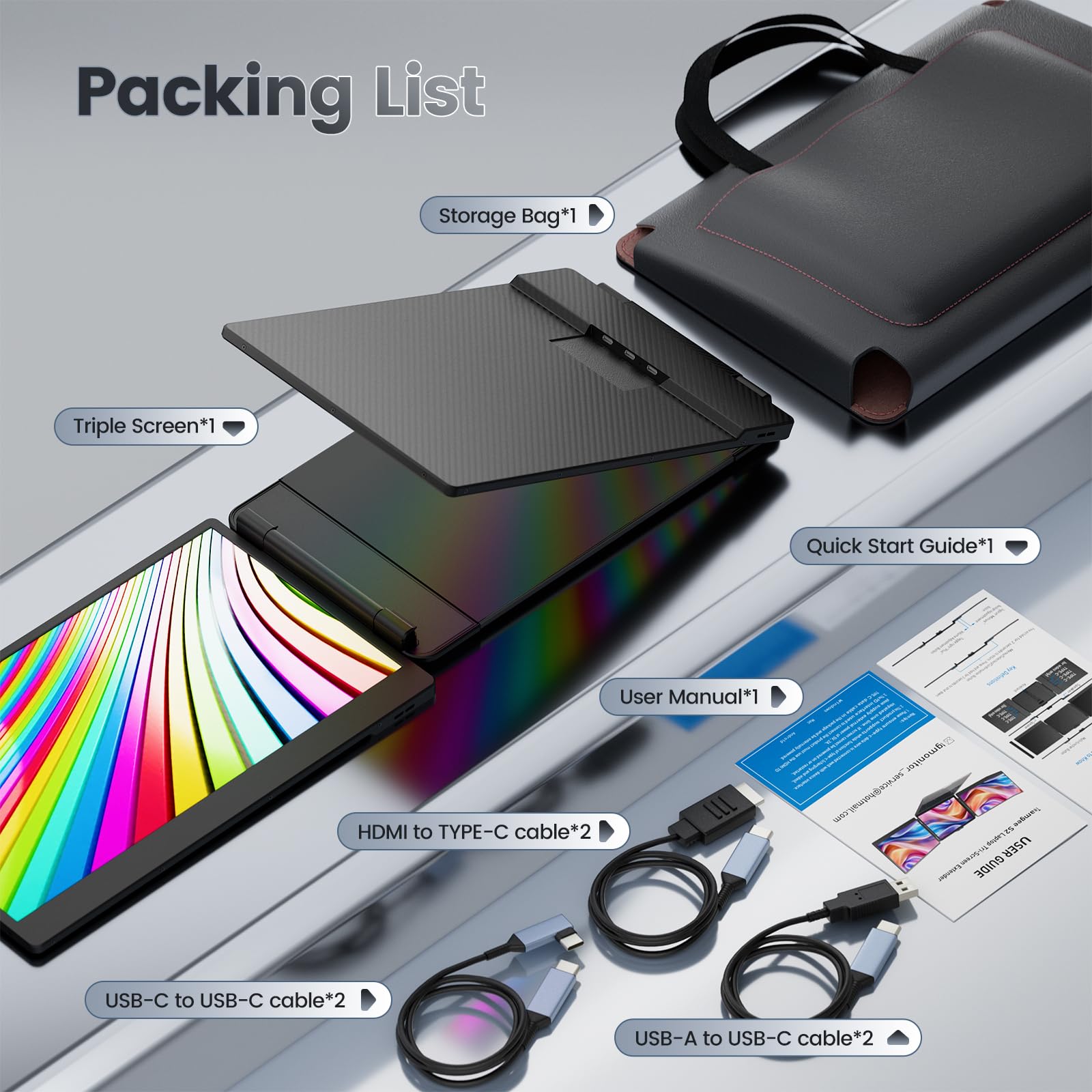 "Productivity increases by 300% - The portable monitor supports extended display, mirroring, and dual-screen modes, perfect for conference presentations and multitasking requirements. Enhance multitasking efficiency with multi-view functionality. Ideal for gamers, programmers, financial professionals, designers, and more, so you can create your personal mobile workstation anytime, anywhere.",