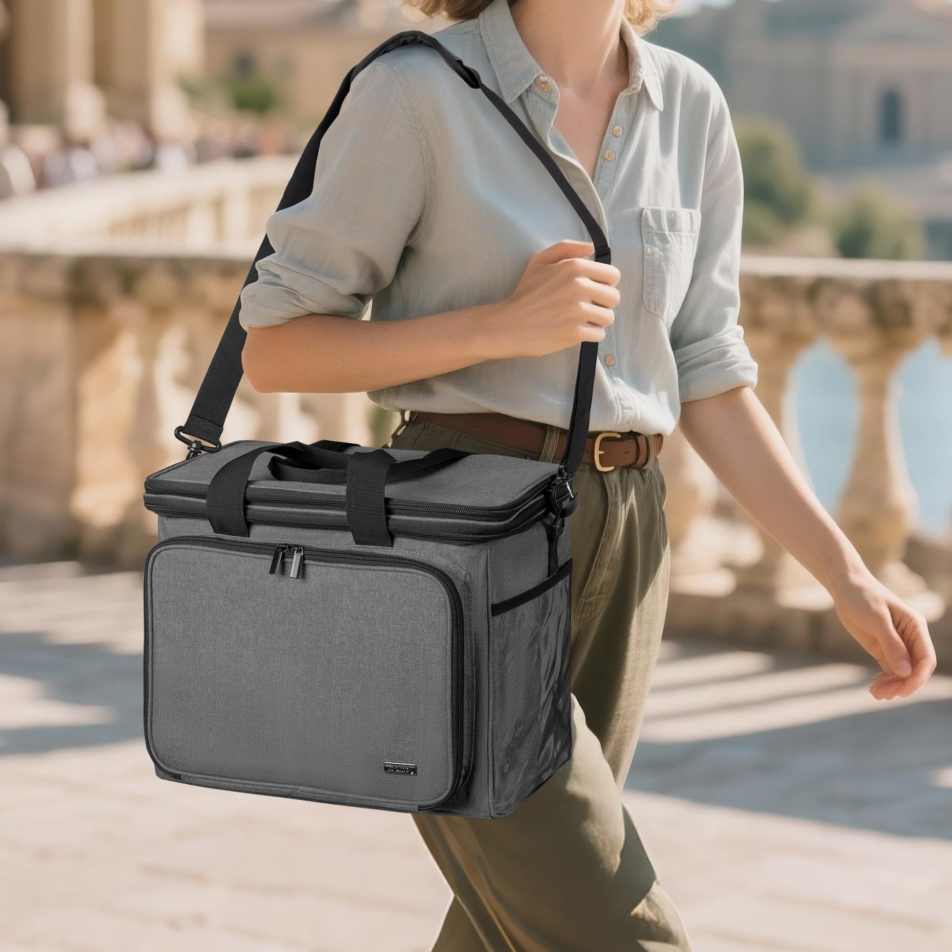 Teamoy storage bag for yarn, suitable for carrying knitting/crochet yarn and accessories, with double lids (accessories not included), Gray.