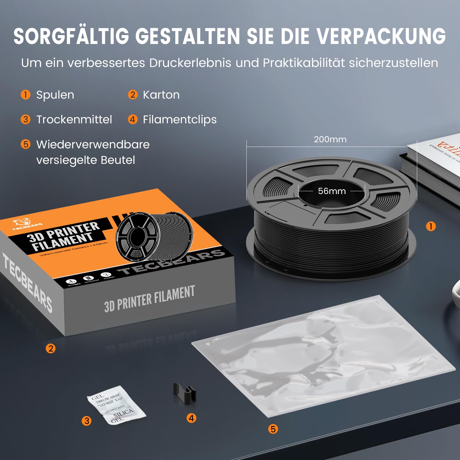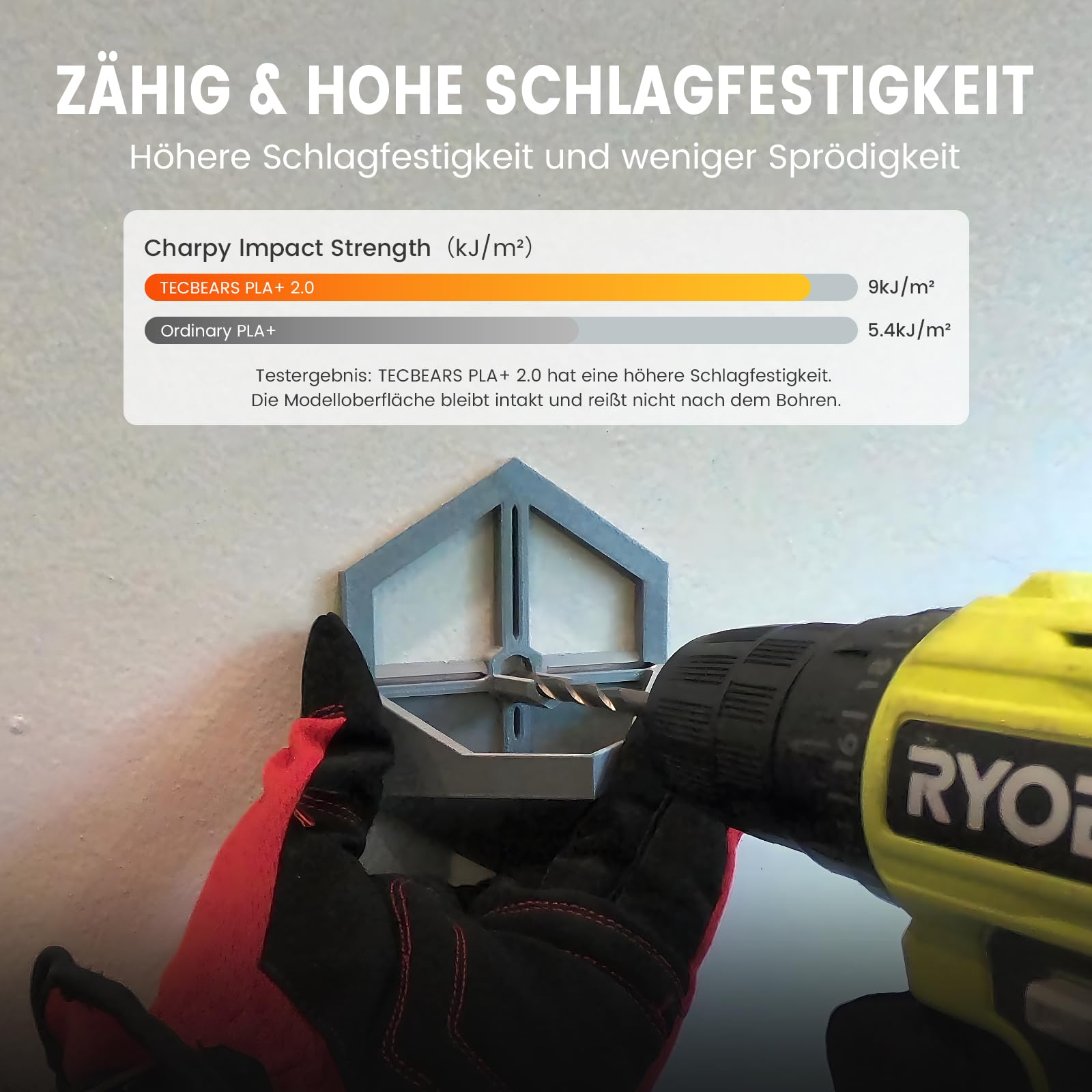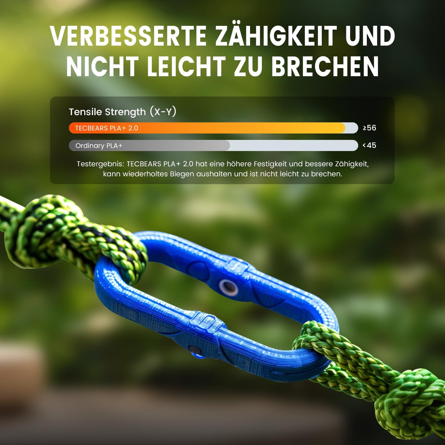 "IMPROVED STRENGTH AND STIFFNESS: Compared to similar products on the market, TECBEARS PLA+ filament has a higher flexural modulus and elongation at break, making it more resistant to brittleness and cracks. Ideal for functional parts.