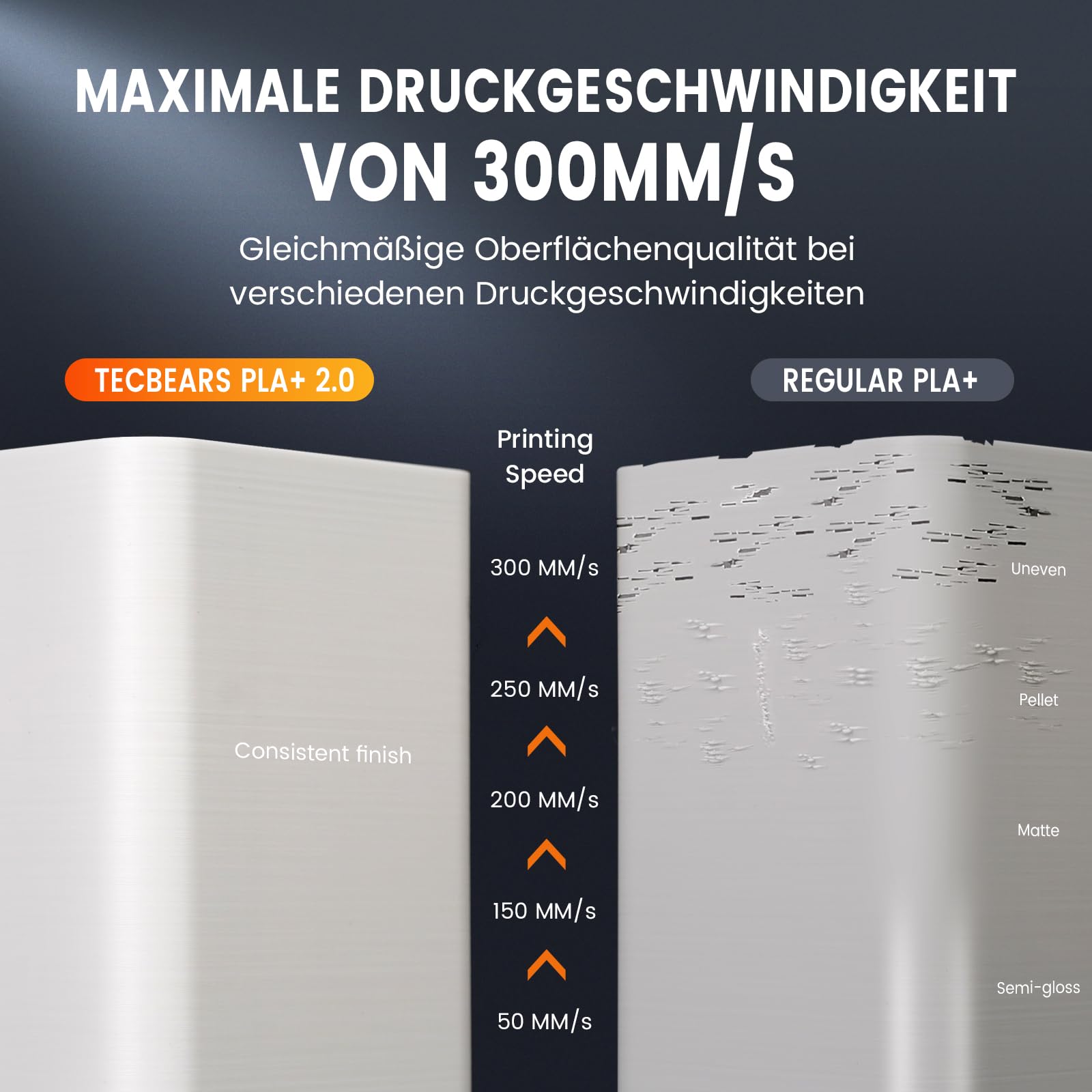 0-300MM/S PRINTING SPEED: The PLA+ filament is suitable for printing speeds of 0-300mm/s. Print your project faster, perfect for normal and high-speed 3D printers.