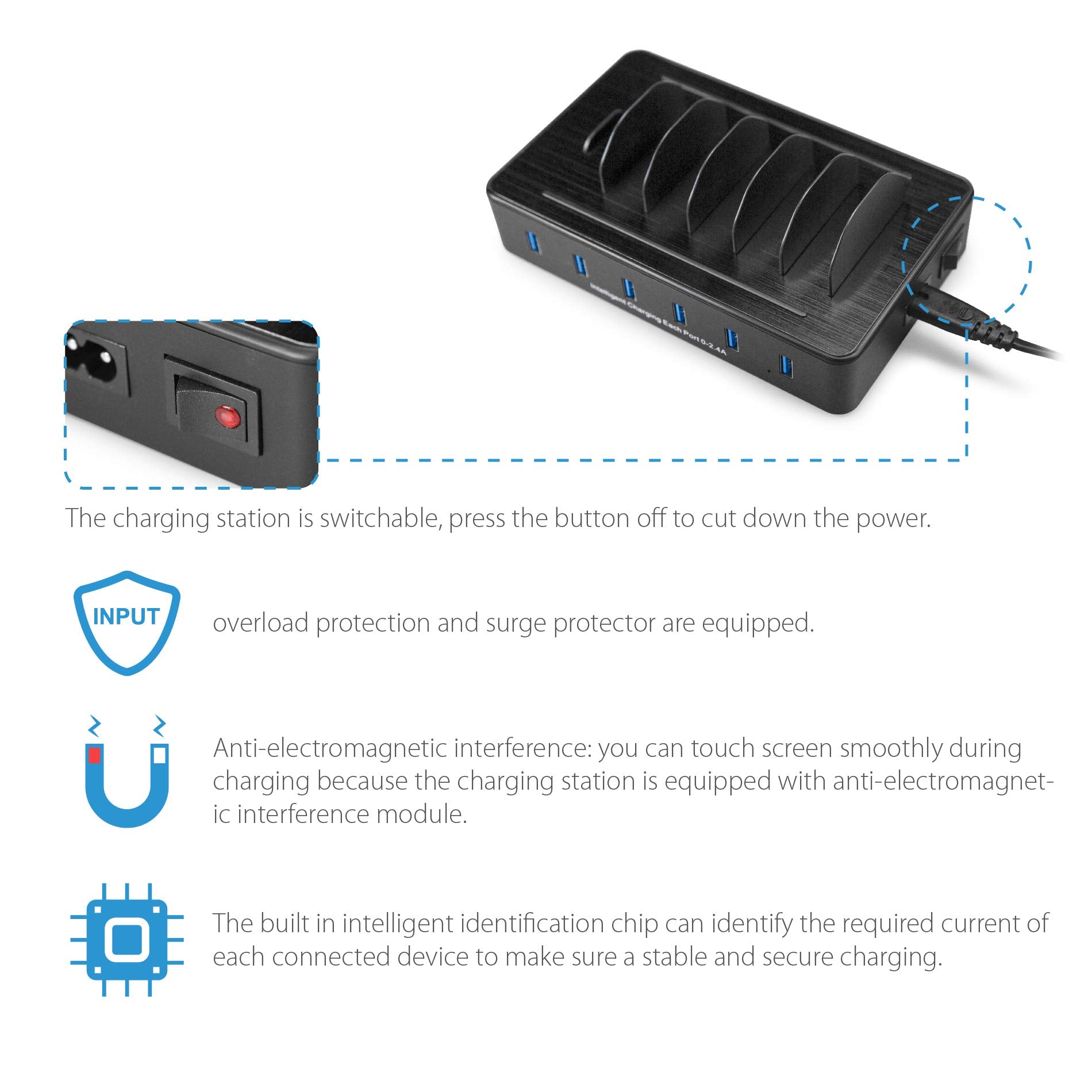 TechDot Mobile USB Charging Station Charging Station Multiple Devices 6 Port USB Multi Charging Station for Mobile Phones Smartphones Tablets (with 3 Micro USB Cables and 3 USB C Cables, Black)