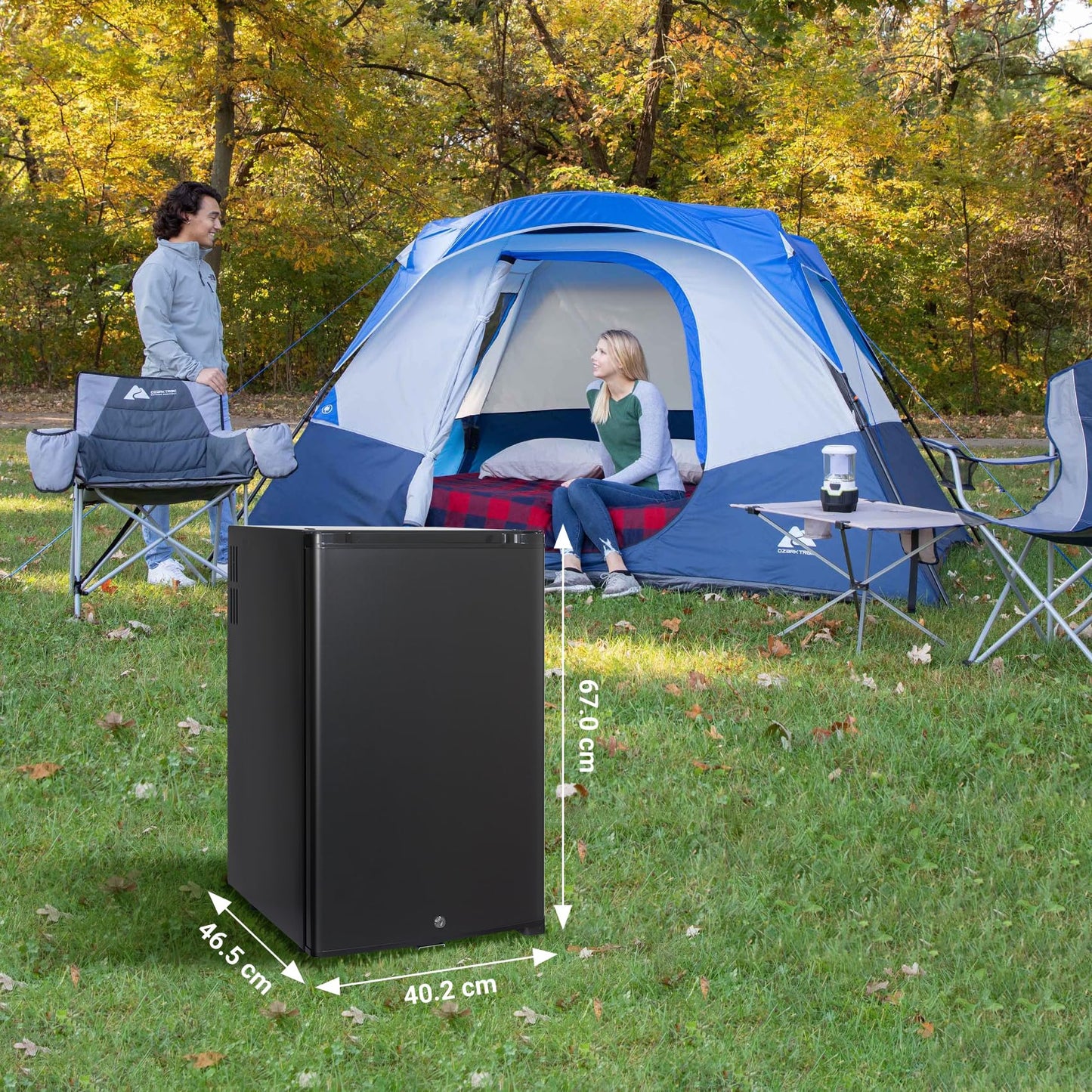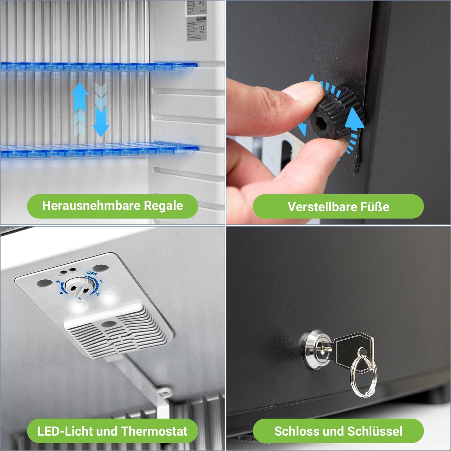 ["🧊Techomey 12V 230V Refrigerator: The camping refrigerator 12v 230v can be operated either through 230V household sockets or through the 12v cigarette lighter in your vehicle while driving. Dimensions (W*D*H): 15.8 x 18.3 x 26.4 inches.","🧊Temperature: With the adjustable thermostat, the 12v refrigerator has a temperature range between 32 and 50 °F, meeting your storage needs.","🧊Quiet 12V Refrigerator: The camping refrigerator 12v 230v operates silently, without Freon, without pollution, thanks to the environmentally friendly absorption cooling system.","🧊Convenient Design: The compact refrigerator 12v 230v for motorhomes features removable shelves, a reversible door, and a lock with key. This makes it ideal for indoor and outdoor use.","🧊Versatility: The refrigerator 12v 230v is ideal for use in living spaces such as bedrooms, offices, hotels, studios, and dormitories, as well as for outdoor activities and vehicles such as camping, traveling, RVs, motorhomes, trucks, and vans."]