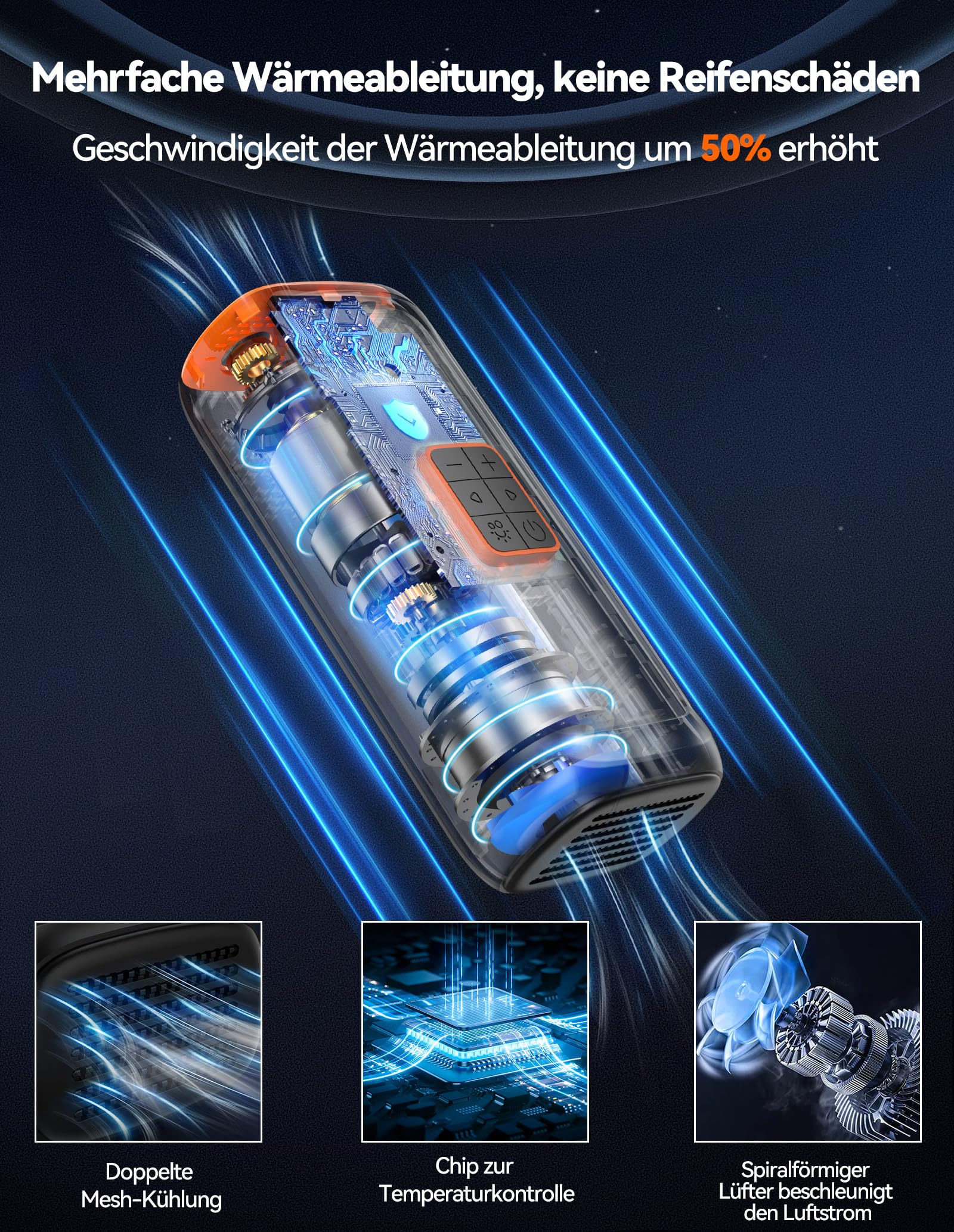 ["Large capacity and fast air pump: The electric bike pump has a maximum air pressure of 150 PSI and can inflate tires (size 195/65/R15) from 29 to 36 PSI in just 1 minute! The battery-powered air pump from has a built-in high-capacity battery, a special high-performance chip, and a built-in powerful turbine motor, so you can inflate your tires quickly. Inflation is efficient and quick, saving time and effort.","Pre-set pressure and automatic stop: The air pump can display the current and pre-set tire pressure on the LED screen and has a memory function to automatically maintain the last set tire pressure. 5 inflation modes (car/motorcycle/bike/ball/custom), 4 adjustable pressure units: PSI, BAR, KPA, KG/cm². The electric bike pump stops automatically when it reaches the preset value to avoid over-inflation.","Air compressor with power bank function and LED light: The battery capacity of the battery compressor is 6000mAh. The battery compressor can be used not only as a mobile power source, but also as a flashlight, so you can conveniently charge your car at night in the car repair. The LED light also has three modes: flashlight, SOS, and strobe. Can be used for illumination in various scenarios.","Super cooling design: The portable electric bike pump has double-sided heat dissipation holes and a spiral fan design, which not only dissipates heat quickly, but also has a longer service life. Compressor for bike and car with a Type-C charging cable, charging is convenient and fast. (A 5V charger is required for charging, not included)","Small size, wireless and portable electric air pump: The wireless design is easy to carry and store, saving space and making long cables unnecessary. The TECKNET mini compressor measures 4.8 x 6.8 x 15.4 cm and weighs 451 grams, making it very lightweight. Compact and versatile. Make traveling easier and more enjoyable. Battery air pumps are not suitable for inflating air mattresses, etc.","36 months warranty: If you encounter problems when using the portable air compressor, please contact TECKNET's professional customer service team and enjoy TECKNET's 36-month warranty support. (for registered users)"]