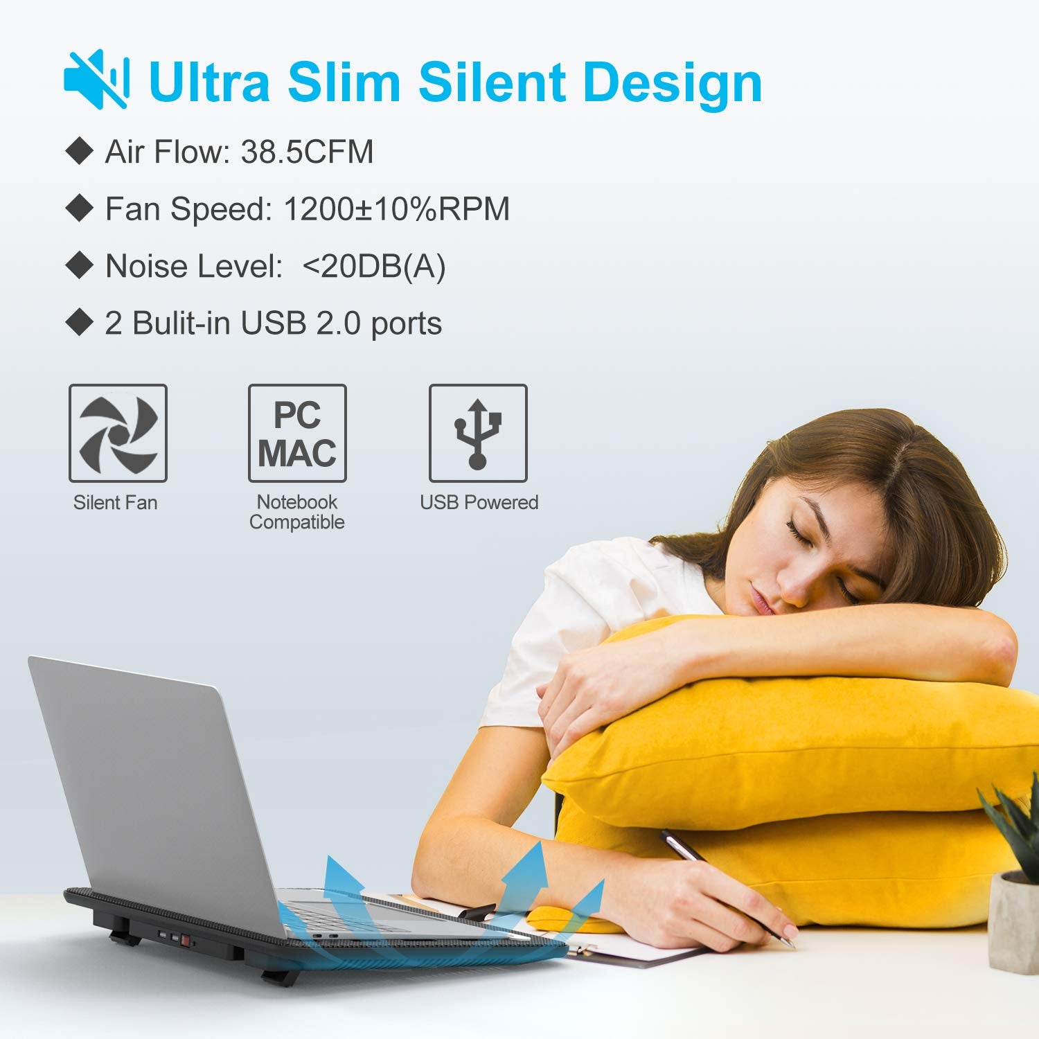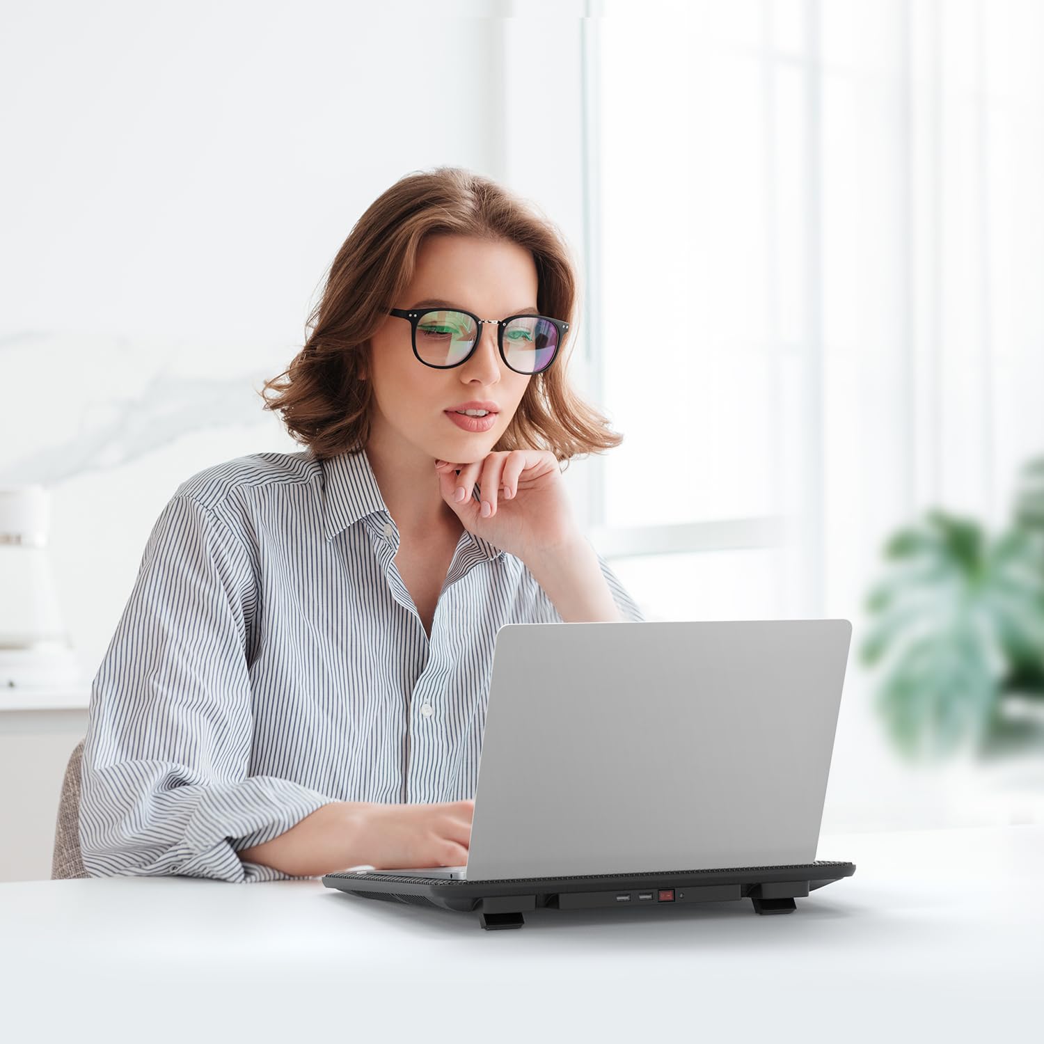 "【Ergonomic Design】You can adjust the appropriate angle according to your needs to effectively relieve back and neck fatigue. Laptop cooler rubber grips on the bottom can prevent your laptop from slipping.",