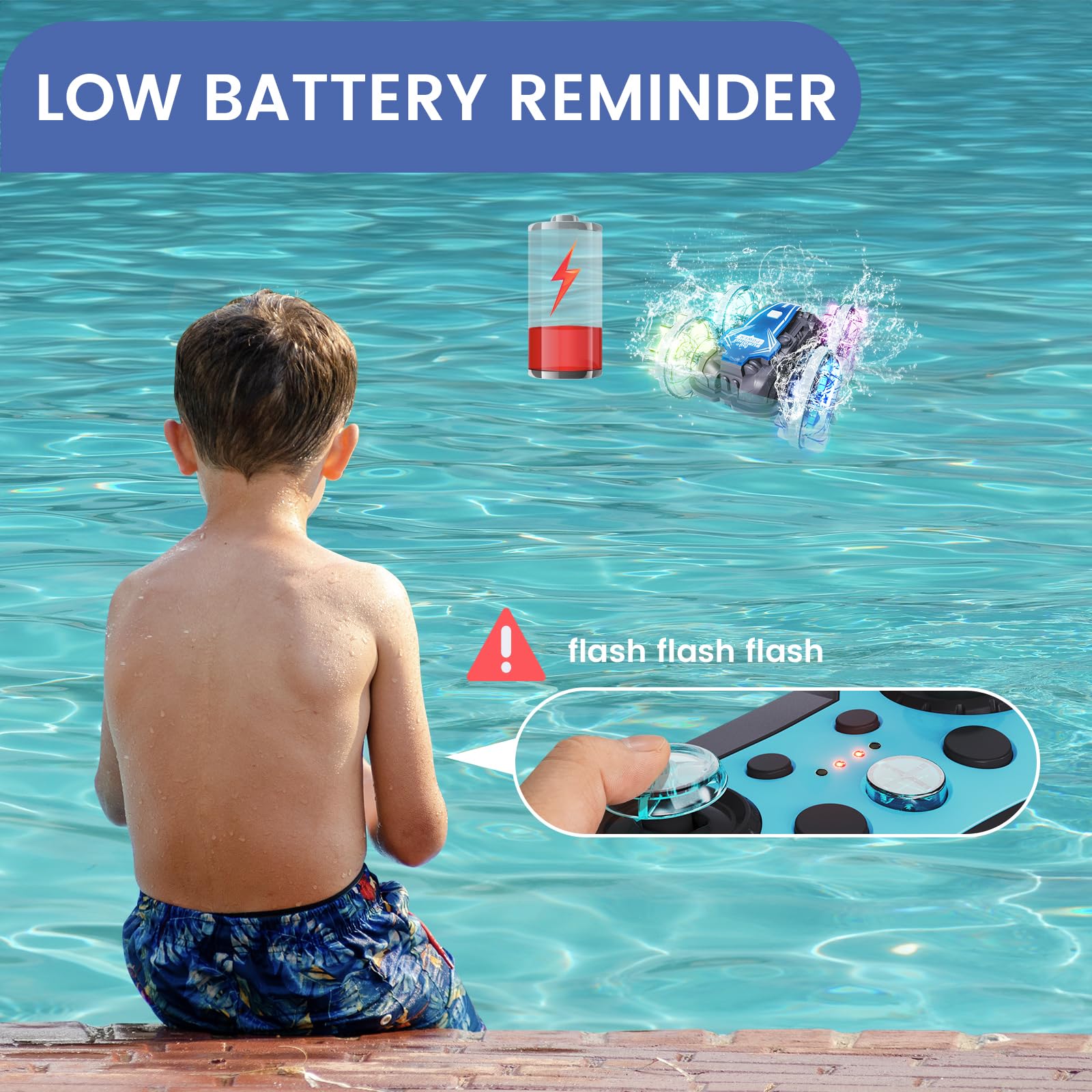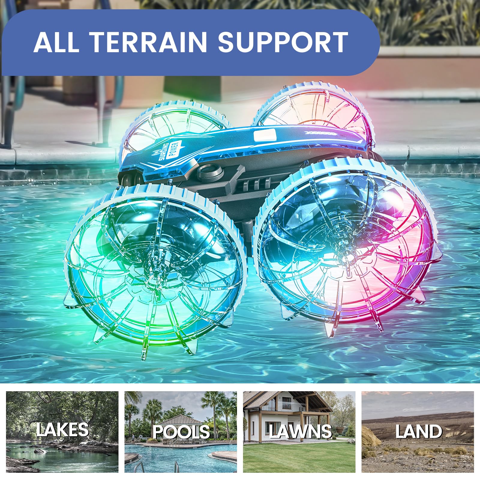 ["Upgraded Waterproof Remote Control"] Our amphibious remote control car features a waterproof body and remote control, providing protection against water damage. Enjoy seamless control and endless fun, whether on land or in water.
