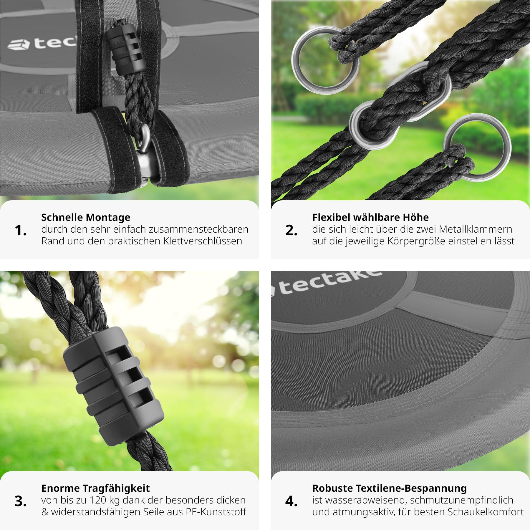 tectake® Nest Swing, capacity up to 120 kg, swing for children and adults, outdoor garden swing or indoor hanging chair, toy for garden or children's room (SIZE Ø 100 cm)