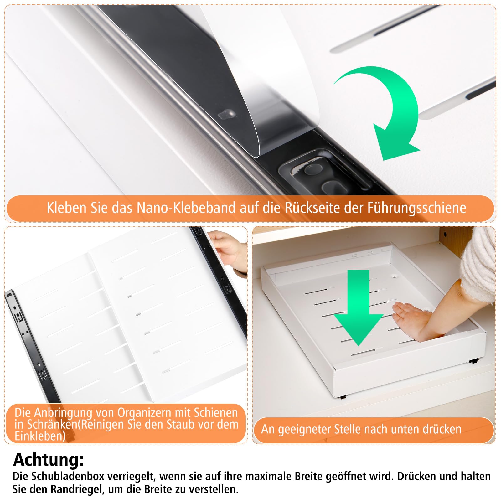 Telescopic Drawer, Expandable Drawer Organizer, Carbon Steel Extendable Drawer Storage Shelves, Smooth Sliding Basket Pull-Out Kitchen Cabinet (White, Expandable Width 43-68cm)