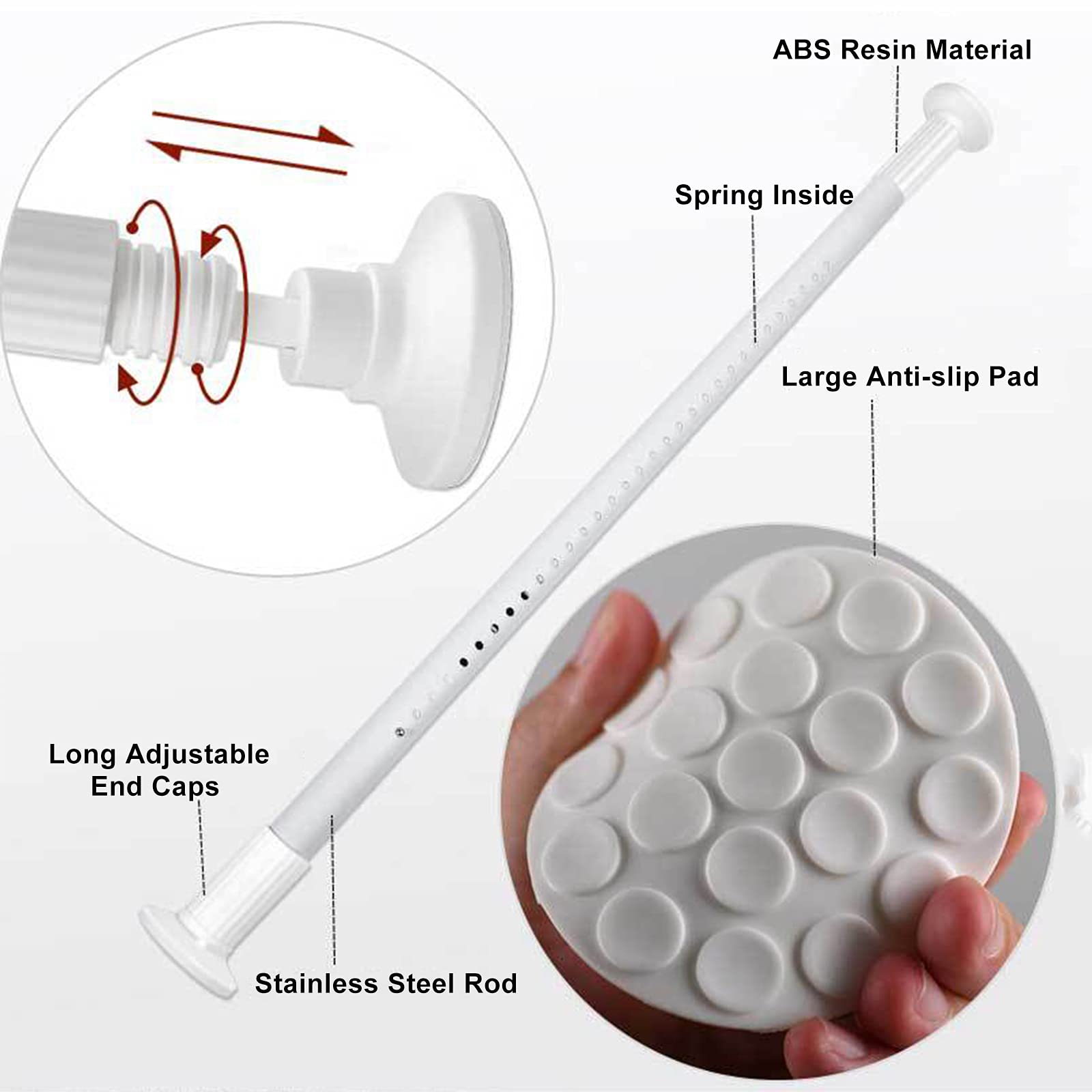 ["Adjustable tension rod from 50.4 inches to 69.7 inches. This elongated curtain rod is the best choice for bathroom curtains, large windows, kitchen, cabinets, and other temporary spaces (rental apartments, homes). Package includes: 1 x tension rod, 2 x end caps",