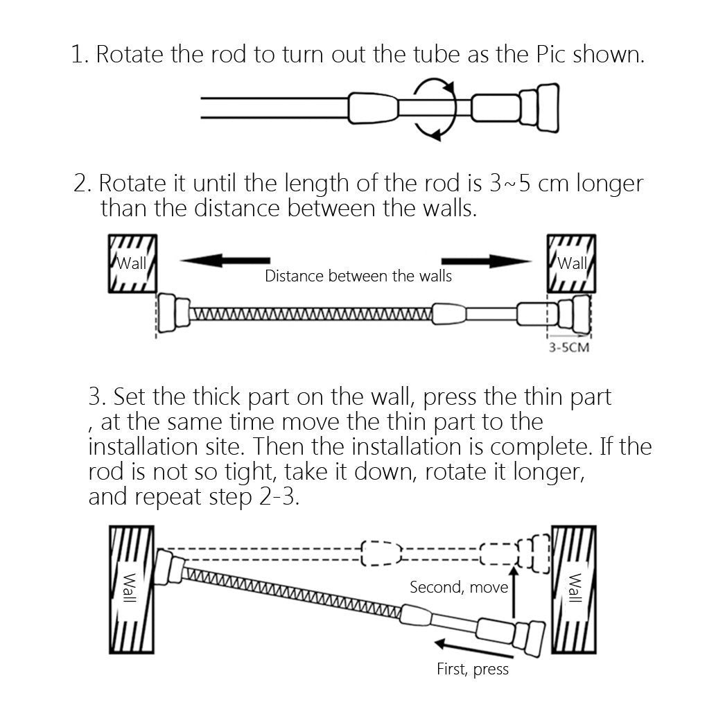 "Stable and durable --- This is made of sturdy stainless steel and can be adjusted to any length by twisting and clamping. The bar holds securely, carries the heavy shower curtain perfectly, and looks chic. Even thicker curtains are held perfectly.