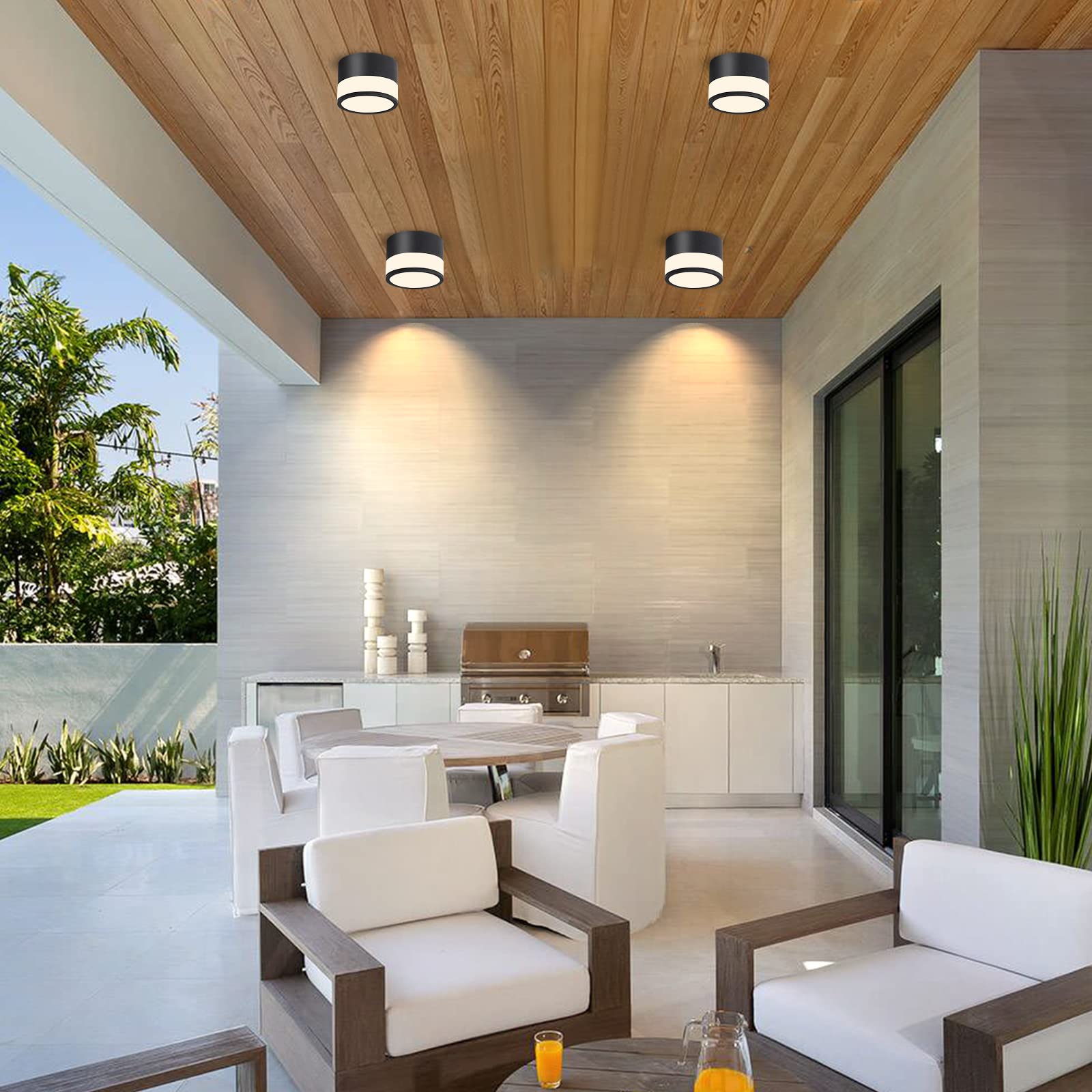 Temgin IP65 Ceiling Light Surface Mount Matte Black LED 12W 3000K Warm White Ceiling Spots Aluminum 230V Ø10cm Surface-mounted luminaire Ceiling lamp Bathroom.