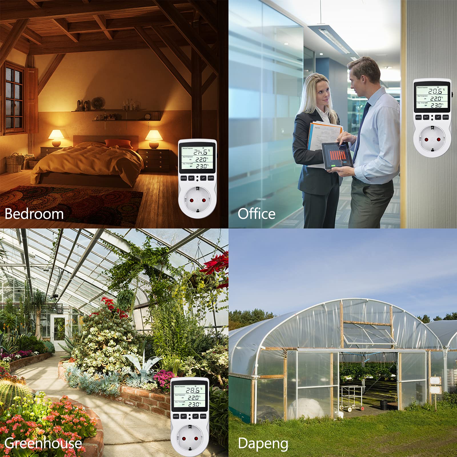 Temperature controller 230v Digital Thermostat Socket Plug thermostat with sensor Timer, Temperature socket heating cooling for greenhouse heating blanket water tank