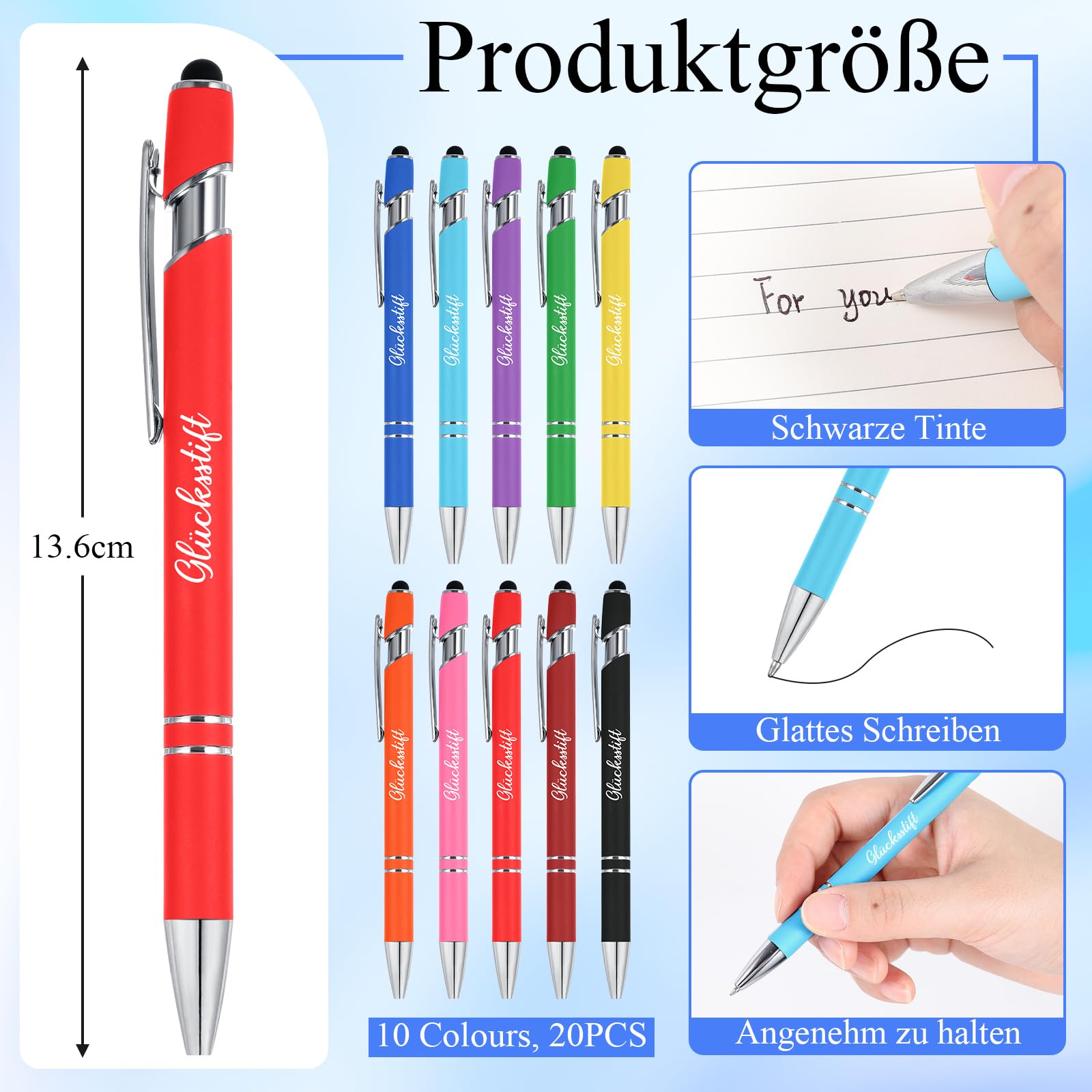 "Extensive Set: You will receive a set of 20 pens with touch in various colors, perfect as gifts or for personal use; With this versatile set, you are well equipped for all writing tasks