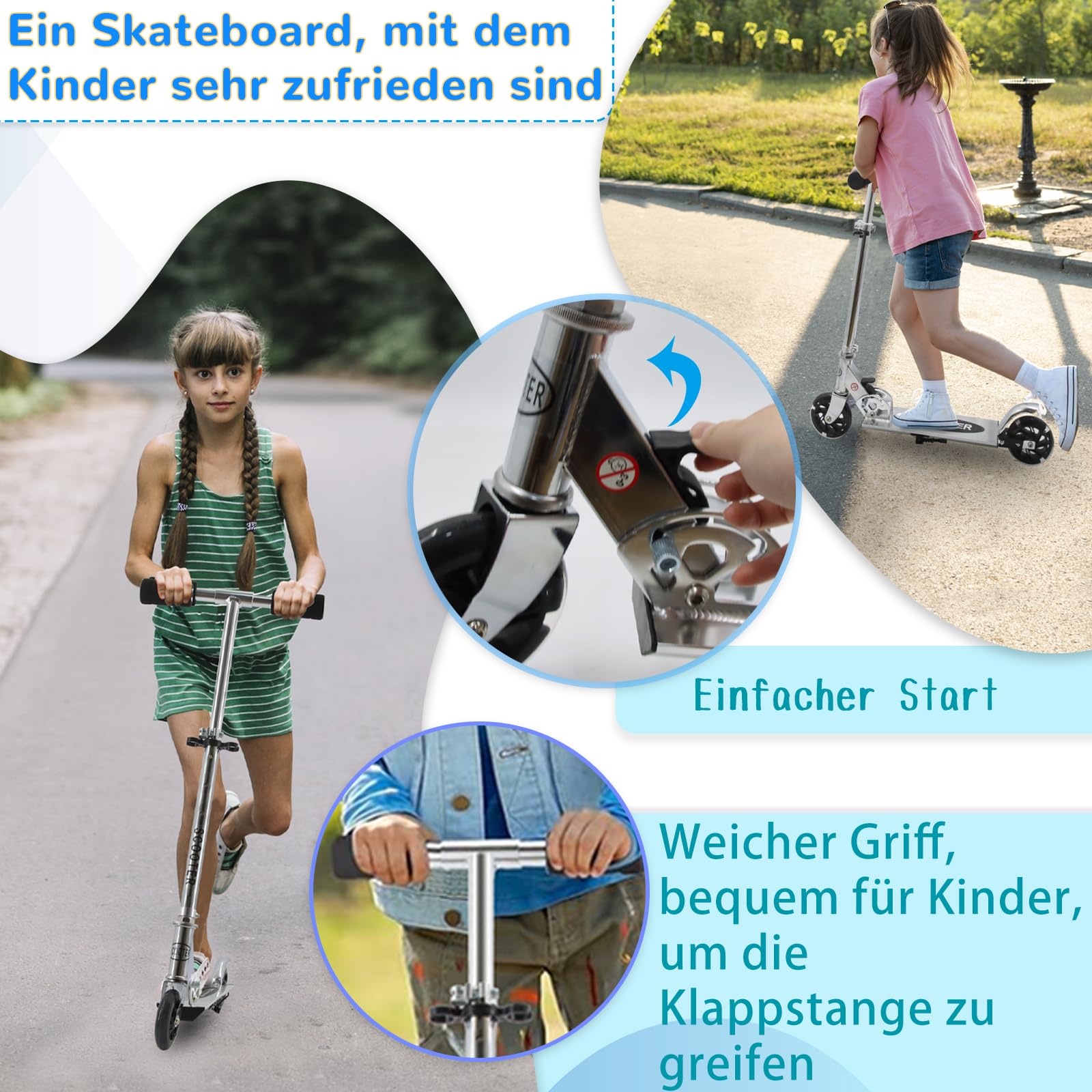 TENBOOM Kids Scooter 6 years, with 2 LED light-up wheels. Foldable and height adjustable, with rear brake. Suitable for boys and girls aged 3-10.