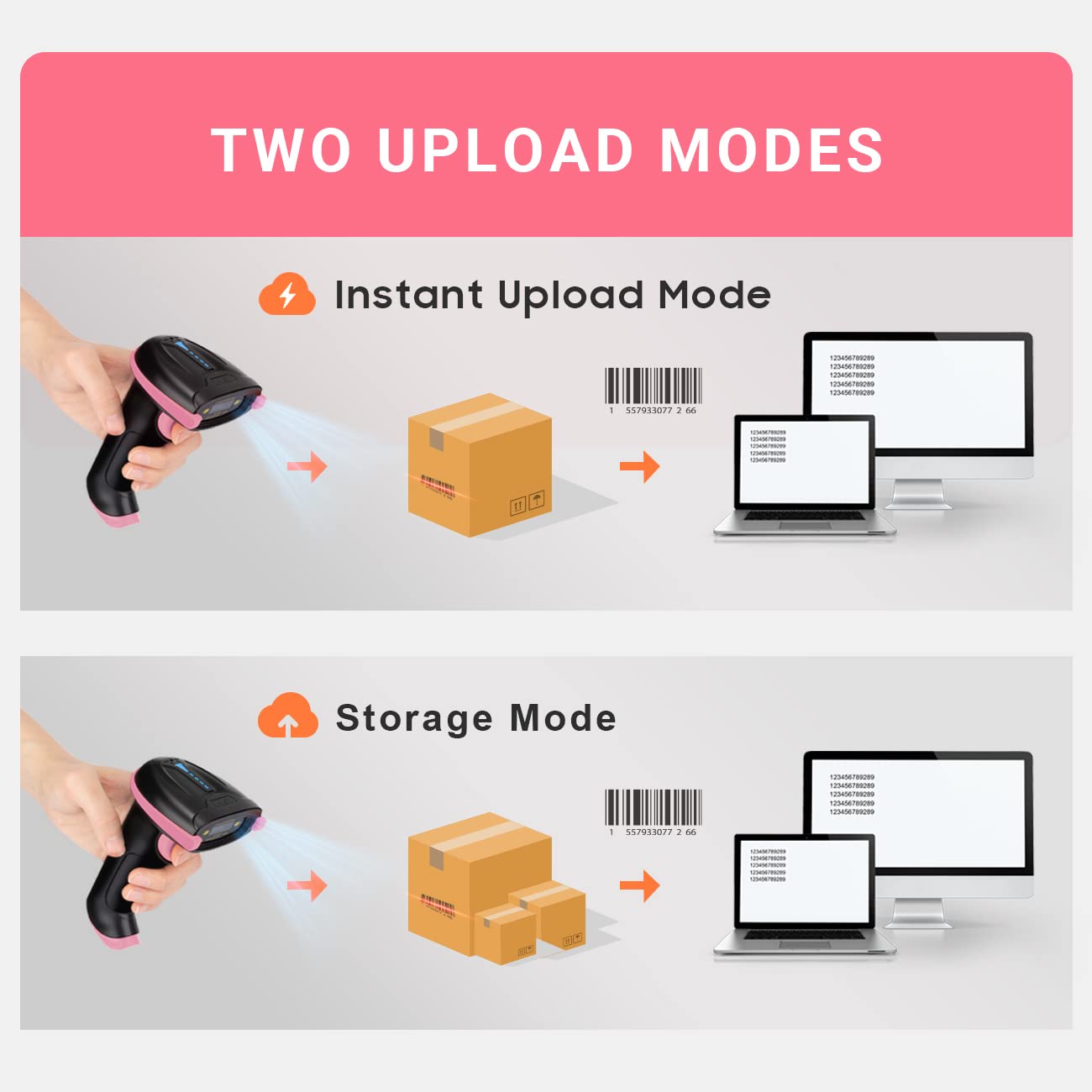 Tera Wireless Barcode Scanner Handheld 1D Laser Wireless and USB Wired with Battery Level Indicator, Extra Large 2200mAh Battery and Ergonomic Design, Patent No.: EU008489413, Upgrade Model 5100 Pink