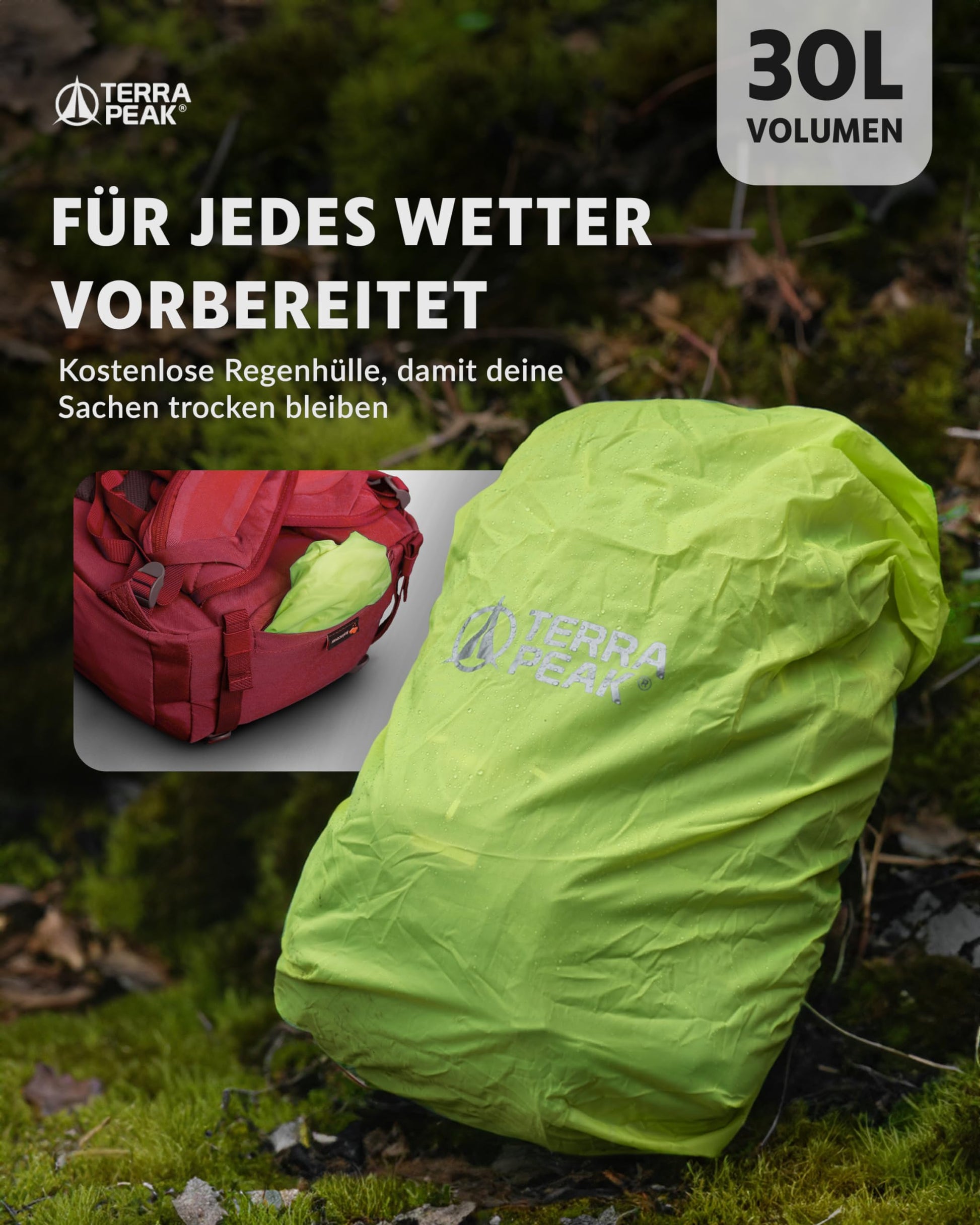 ✅ PREMIUM QUALITÄT: The dark red backpack is made of 420D Ripstop Nylon and 600D Terra Pro Polyester and is equipped with YKK zippers for long hikes. With 30 liters volume and dimensions of (L)34x(W)16x(H)55cm, it is a perfect daypack and all-rounder, weighing only 1.2 kg.