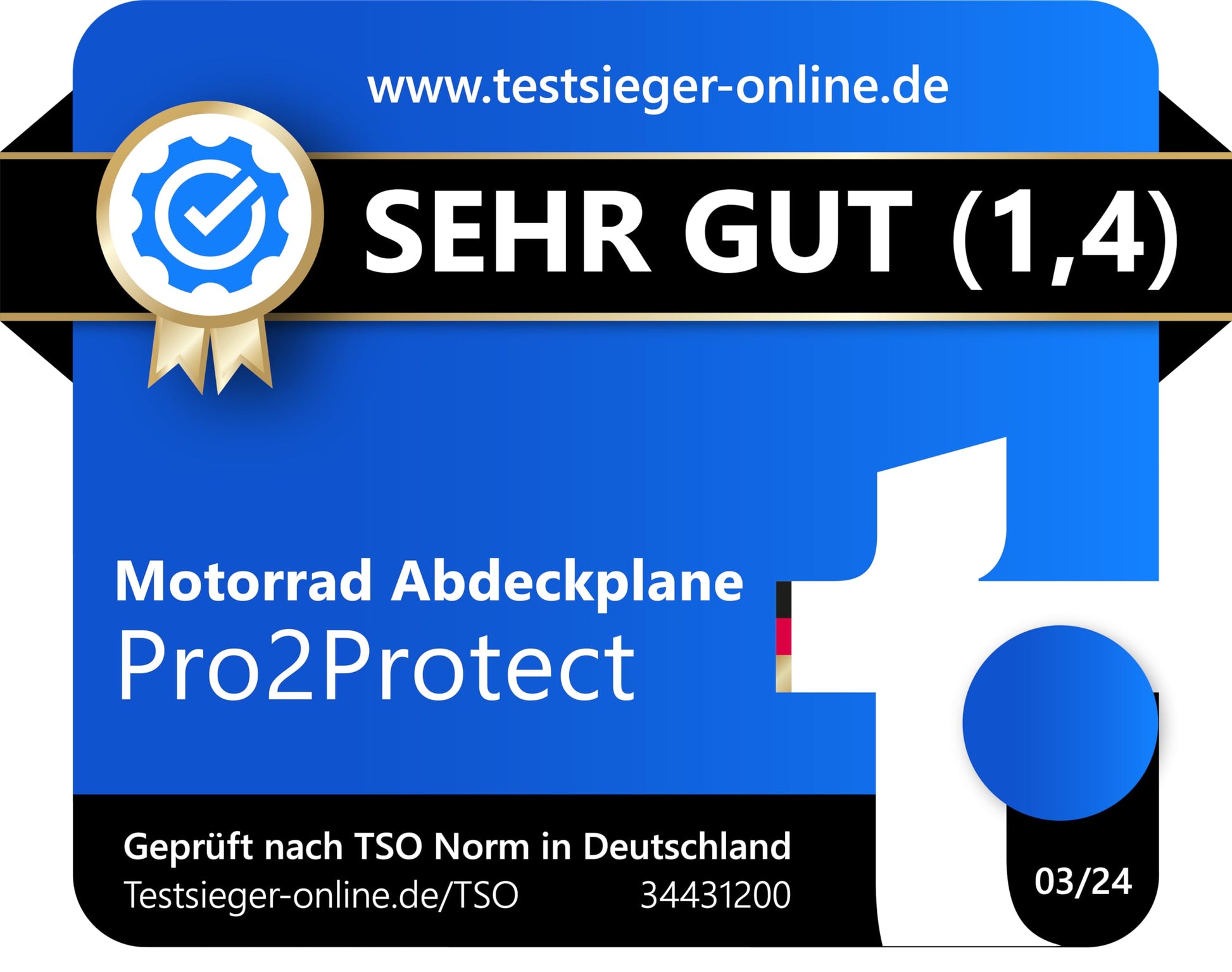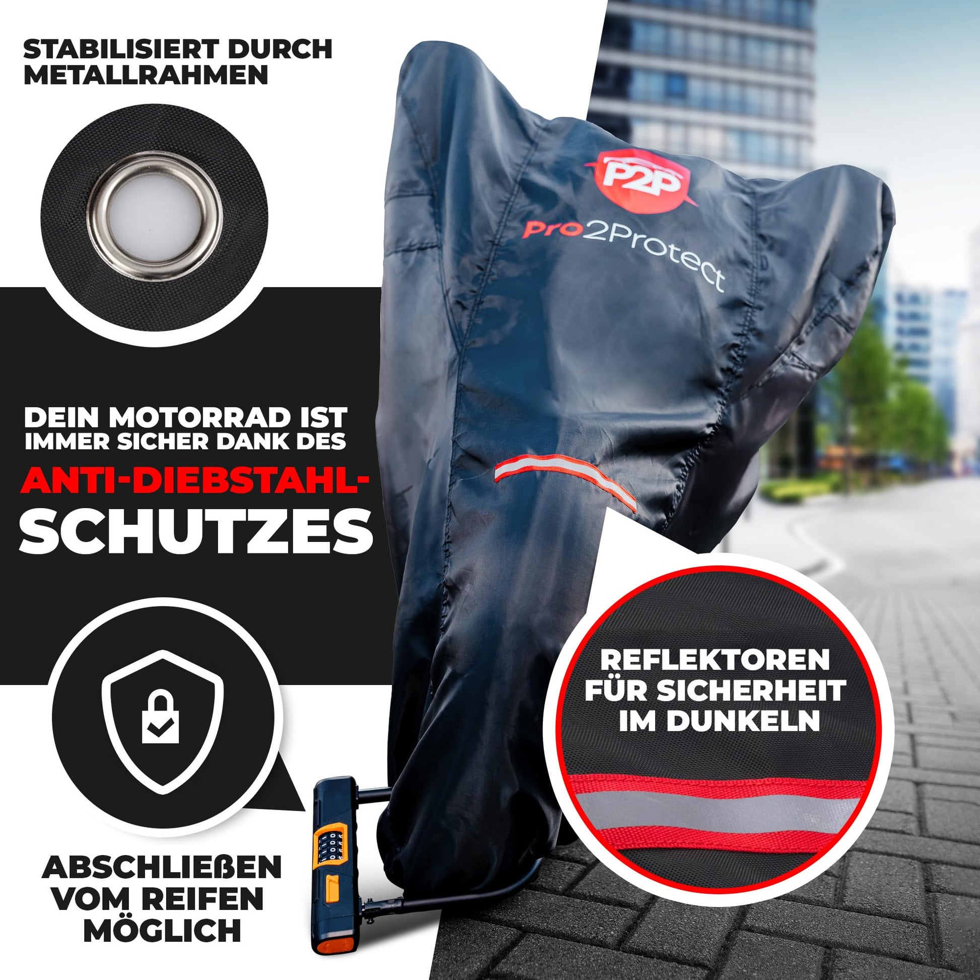 "✅VERY WELL TESTED* | Motorcycle cover | The high-quality Pro2Protect motorcycle cover has undergone strict testing procedures and passed with the grade "1.4 VERY GOOD." TEST: Testsieger-Online.de, period 03/2024. Result: Grade 1.4, VERY GOOD. The high-quality fabric of the motorcycle cover protects your motorcycle in summer and winter. Buy the best cover for your moped, scooter, motorbike, or bike for top protection."