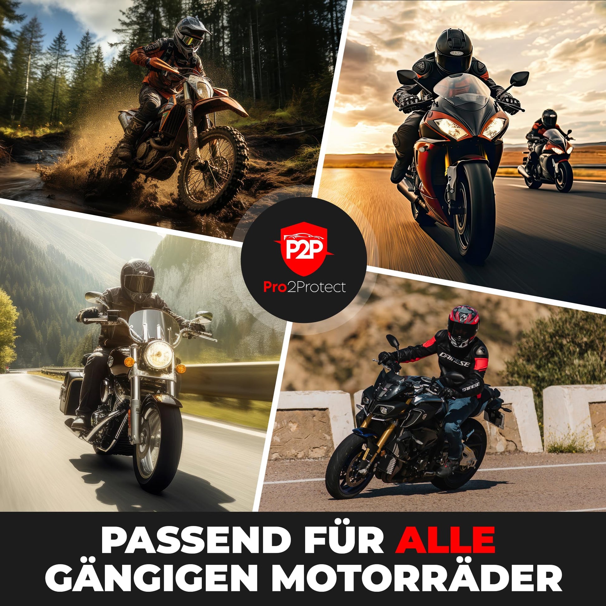 "✅PROTECT NOW WITH PRO2PROTECT! | Because we care about protecting your motorcycle, we aim to ensure the longevity of all two-wheelers with our outdoor motorcycle cover. Our high-quality cover protects your motorcycle, moped, scooter, motorbike, or bicycle from all weather influences: rain, snow, dust, or UV rays. The durable material ensures that your moped remains in perfect condition. Invest in quality with Pro2Protect!"