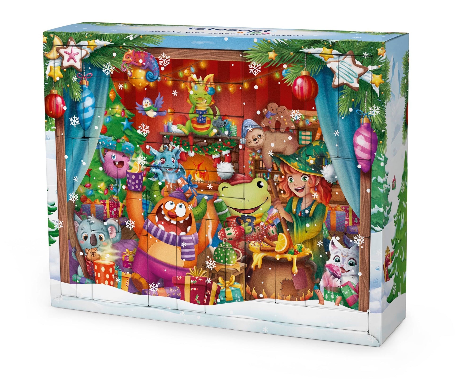 ["Badespaß Advent calendar: Bath clay, fizzing salts, foam and effect baths or colorful bath surprises - the tetesept Advent calendar has something for every water rat!","Painting, crafting & puzzling: In addition to exciting bath additives and special surprises from the Lutz Mauder Verlag, you will find a new idea on each box every day - so the Christmas season flies by.","With 2 Christmas motifs: High-quality box-in-box calendar with two great motifs on the front and back for puzzling!","Space for your own: For a personal touch, the boxes have enough space to accommodate your own little extras and make the Christmas calendar unique.","Scope of delivery: tetesept Kids Advent calendar with 24 great gifts (19 x tetesept bath fun & 5 x surprises from the Lutz Mauder Verlag; more information in the product description)"]