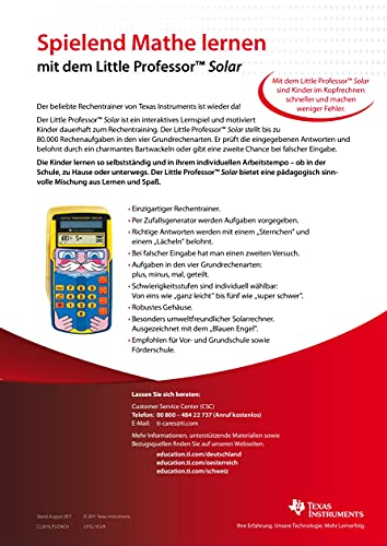 Texas Instruments Little Professor Calculator (for preschool and elementary school, solar powered, with 80,000 math problems) yellow-blue.