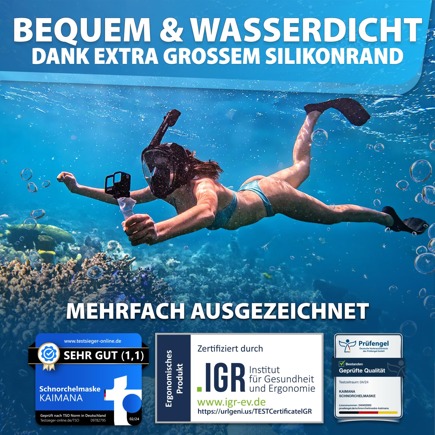 The award-winning KAIMANA® snorkel mask for adults & kids - completely CO2 safe - includes carry bag - adult diving mask - full face diving mask