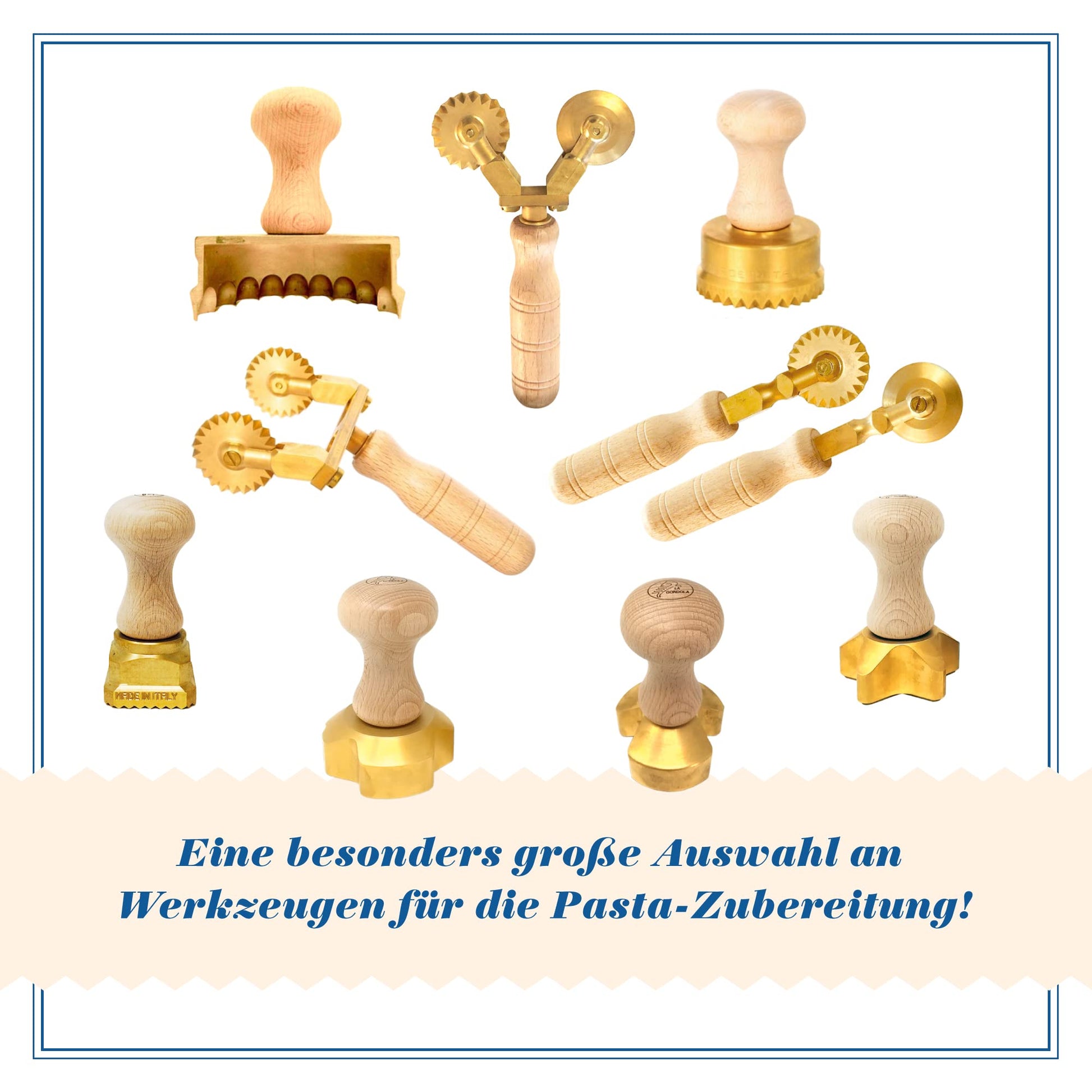 ["SAVE YOUR TIME: Our Ravioli Stamp is designed to save you time and effort in the kitchen. Simply place the stamp on the dough with filling and press the cutter down to cut and shape the ravioli. You will get perfect results every time without needing complicated techniques or tools.","BUILT TO LAST A LIFETIME: Our Italian Ravioli Stamp is made of high-quality materials designed for long-lasting durability. The brass pasta cutter is sturdy and durable, while the natural wood handle provides a comfortable grip and adds a touch of elegance to your kitchen.","GREAT SELECTION: We offer a wide range of sizes and shapes for Ravioli Stamps, from small round ravioli shapes to larger square shapes for big ravioli. With so many options, you can create a variety of ravioli shapes and sizes for any recipe and occasion.","MADE WITH LOVE FROM ITALY: Our Ravioli Cutters are made in Italy by skilled craftsmen who take pride in their work. You can trust that our ravioli stamps are of the highest quality and are authentic Italian tools for pasta makers.","RAVIOLI OF THE HIGHEST LEVEL: Impress your friends and family with homemade ravioli that look and taste like they come from a restaurant. Our Ravioli Stamps are also suitable for use in commercial kitchens, allowing you to take your pasta-making skills to the next level."]