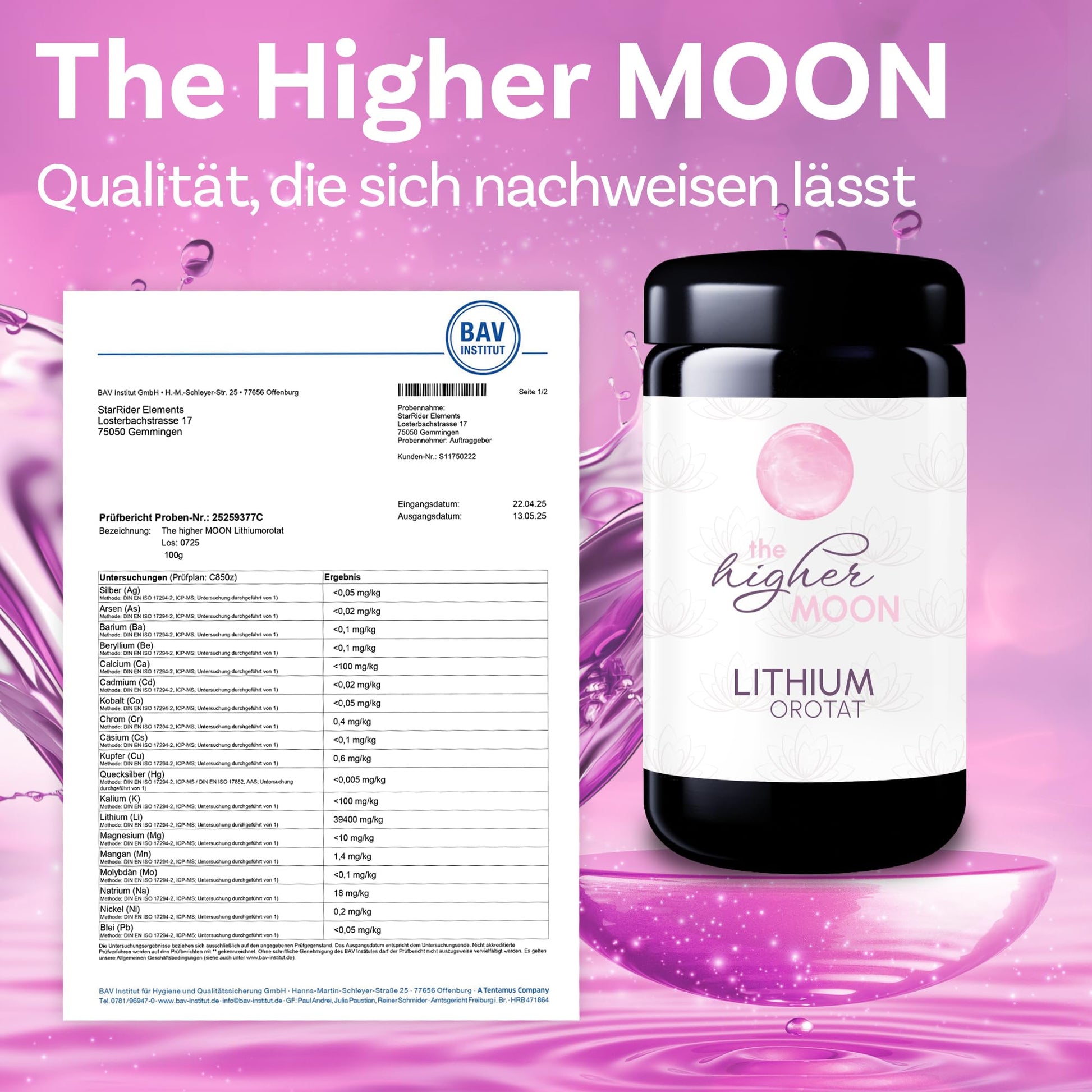 The higher MOON Lithium Powder 100g in violet glass | Li-Orotate for laboratory purposes | Highest purity 99.9% | 4% lithium content | Independently laboratory tested