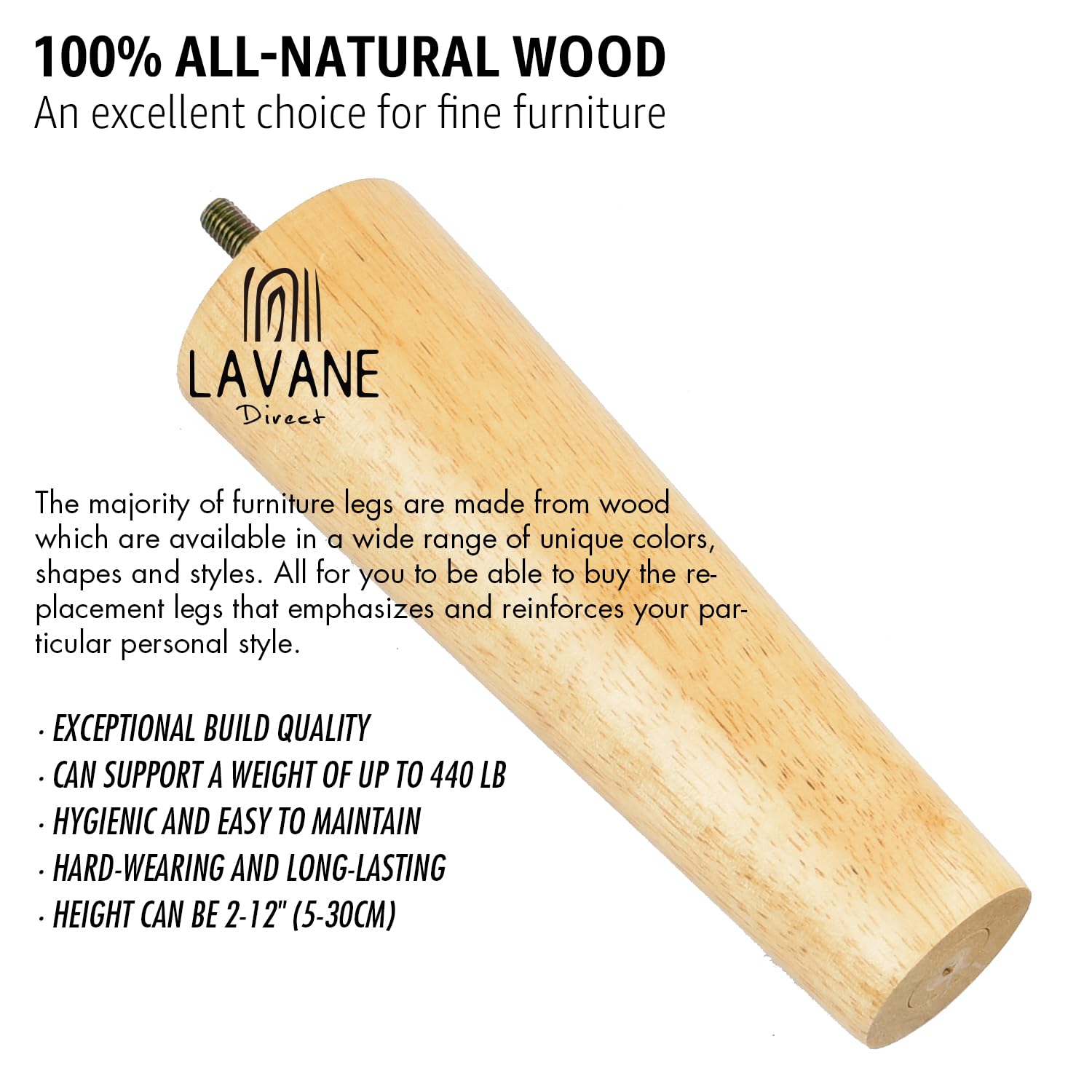 The La Vane 4pcs Solid Wood Furniture Legs - Cone Shaped Table Legs Replacement (Height: 20cm) with M8 Threaded Bolt, Mounting Plates - For Sofa, Bed, Cabinet, Couch, Ottoman & Tables - Easy to install.