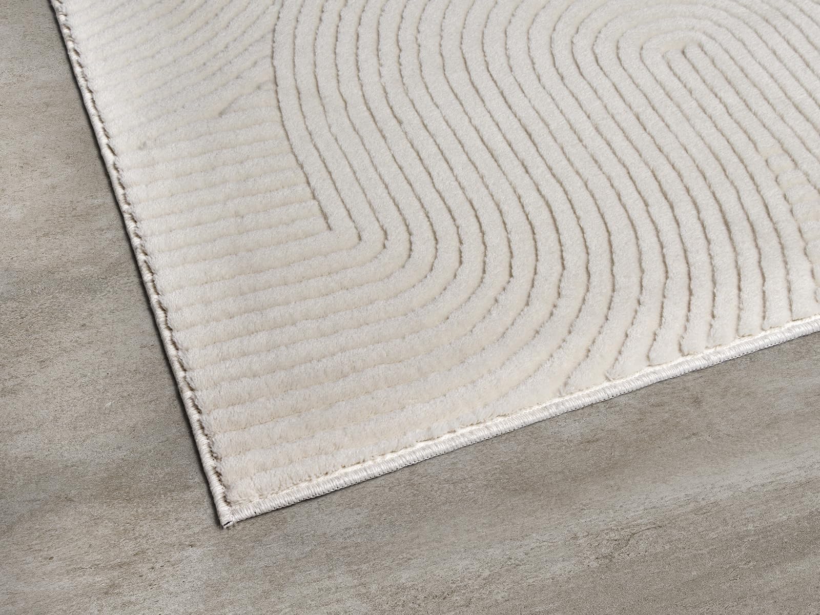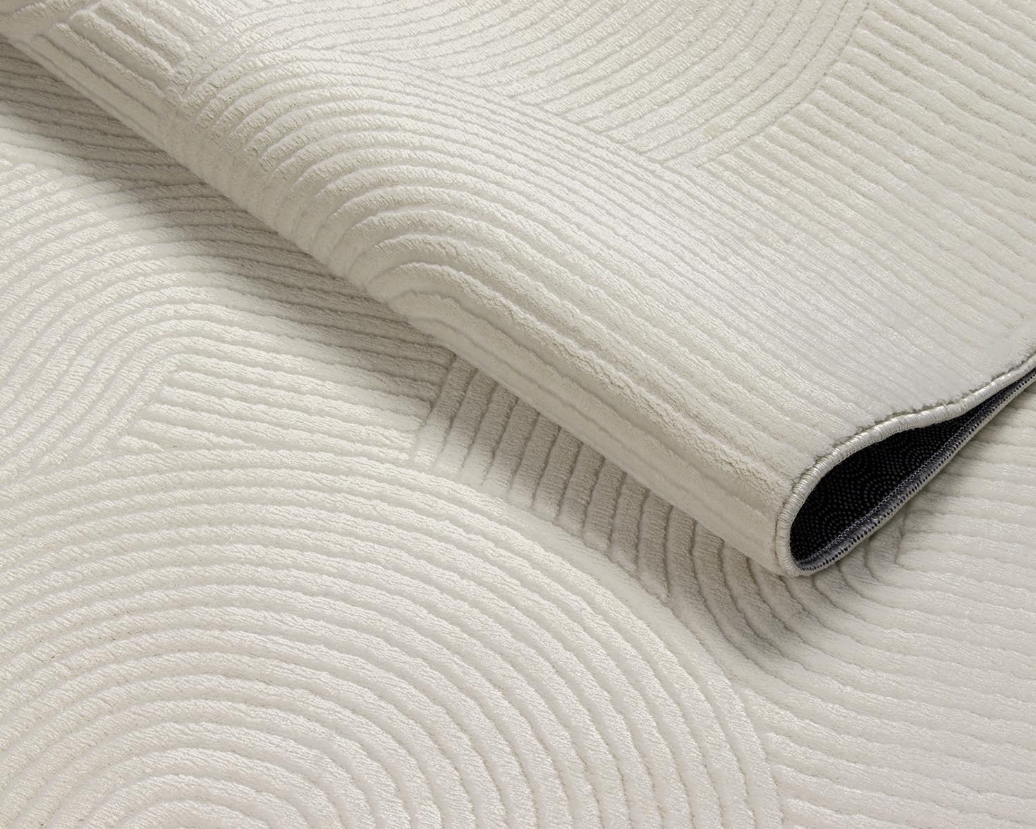 the Rio carpet - modern and soft rug for living room or bedroom with non-slip backing and 3D effect. Fluffy surface, easy to care for and durable. Cream color, 200 x 280 cm.