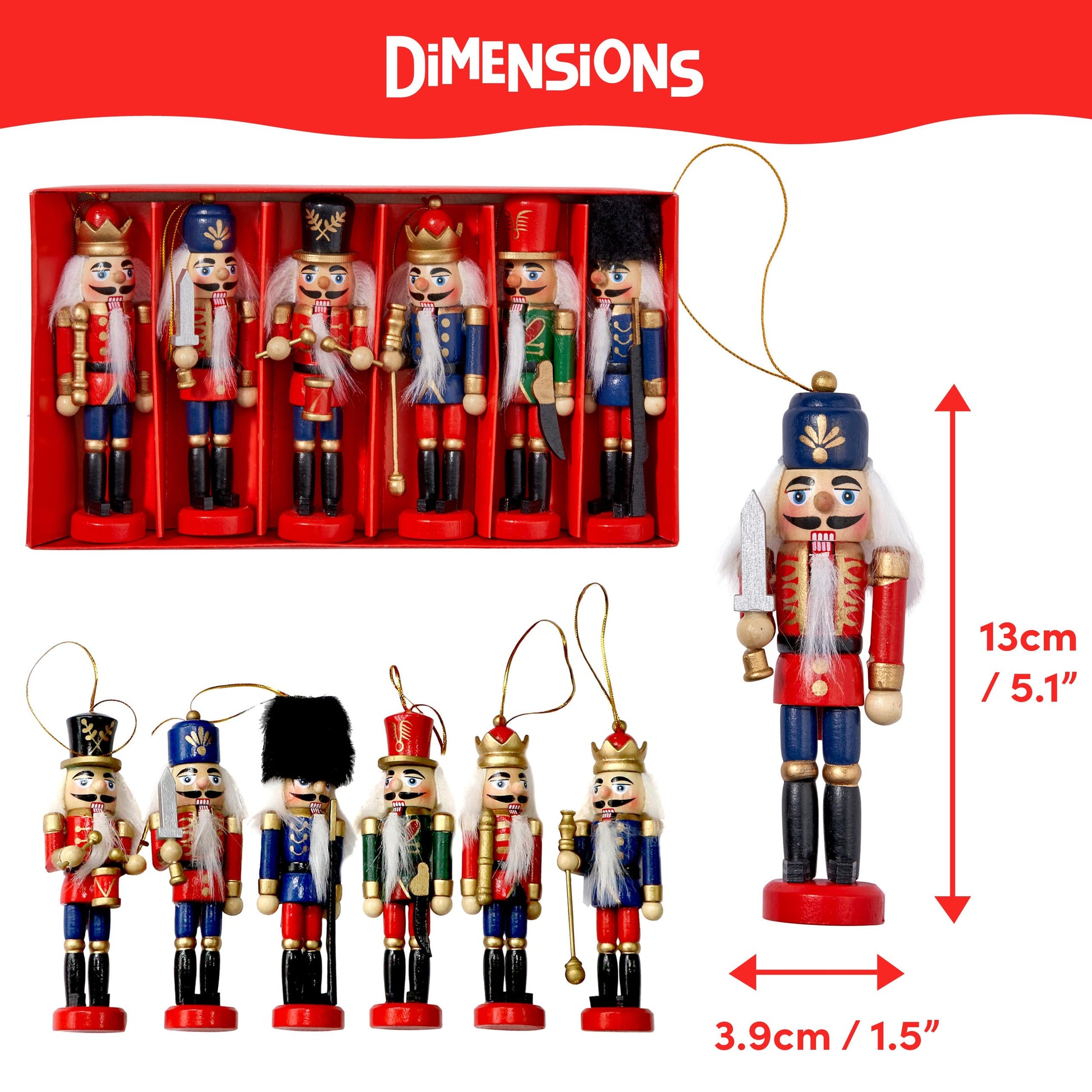 THE TWIDDLERS - 6 Traditional Christmas wooden Nutcrackers, 13cm - Soldier Ornaments Tree Decorations Christmas Tree Ornaments Christmas Decorations
